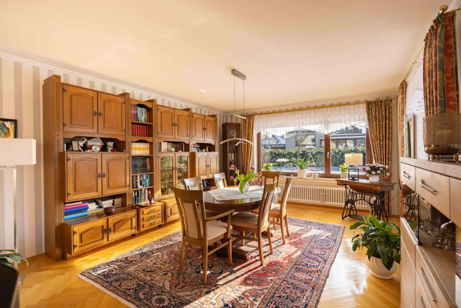 • Echtholzparkett im Wohnzimmer und Schlafzimmer im EG