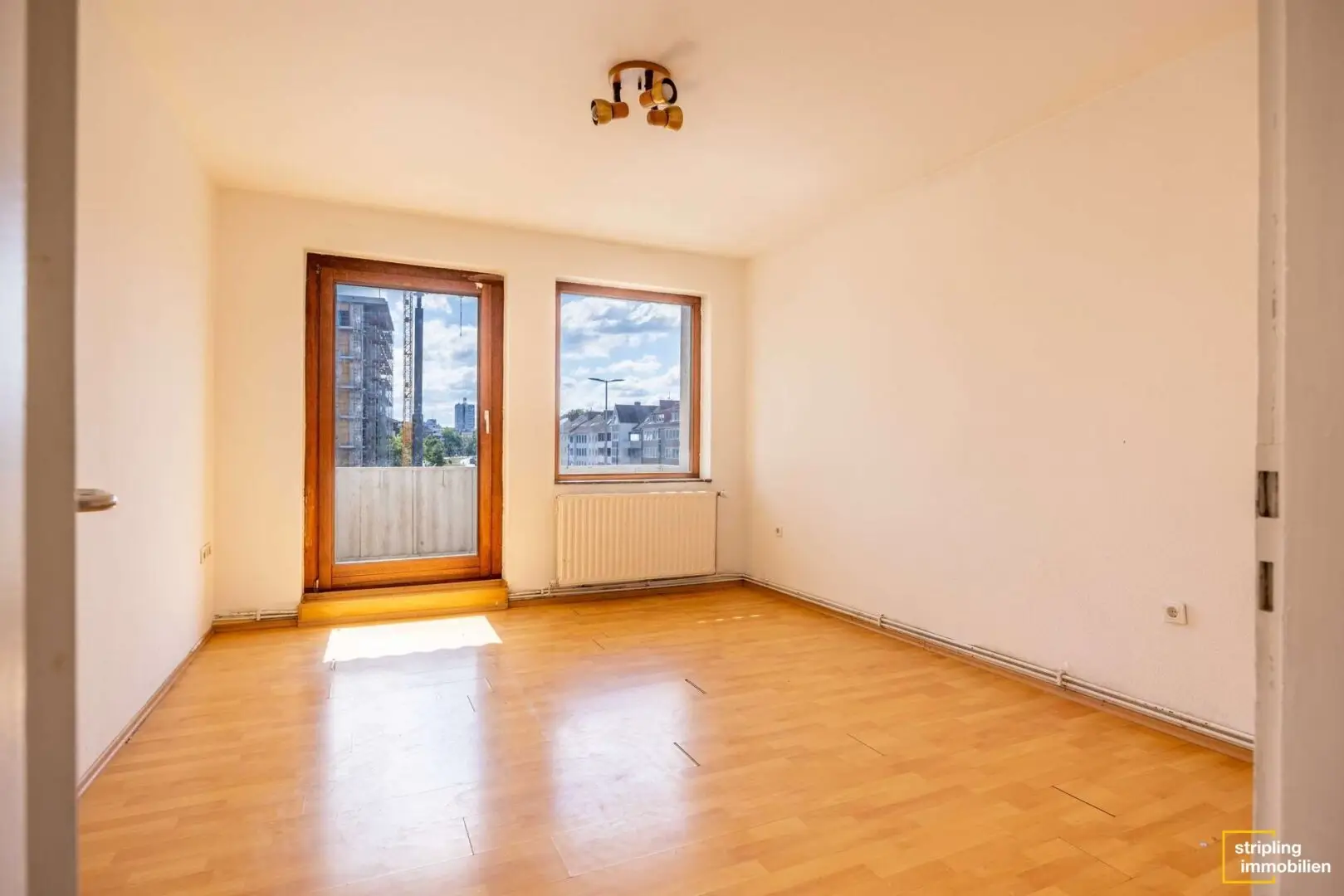 Bereits beim Eintreten zeigt sich das Potenzial dieser Wohnung: Das Wohnzimmer bietet Zugang zur gelegenen Loggia, die als überdachter Außenbereich genutzt werden kann. Ein Stromanschluss auf dem Balkon eröffnet Möglichkeiten zur Gestaltung, etwa als kleiner Frühstücksplatz oder als geschützter Ort für eine künftige Wohlfühlzone. Die Wohnung befindet sich insgesamt in renovierungsbedürftigem Zustand – insbesondere Bodenbeläge, Türen und Fenster benötigen eine Auffrischung –, bietet jedoch die ideale Leinwand für eine individuelle Neugestaltung nach eigenen Vorstellungen.