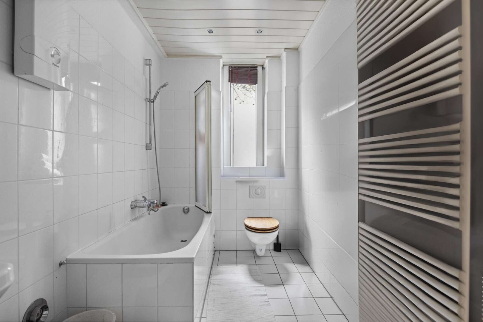 • 4x Badezimmer mit Duschwanne, Waschbecken, Toilette und Fenster
