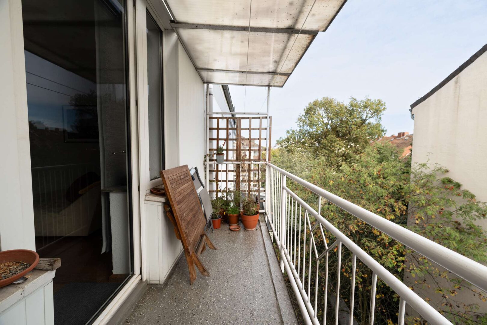 Ein besonderes Highlight ist der überdachte Balkon mit rund 5 Quadratmetern, der wettergeschützte Außenfläche bietet und zum Verweilen einlädt. Ob für den Morgenkaffee oder entspannte Abendstunden – der Balkon erweitert den Wohnraum nach draußen und erhöht die Lebensqualität spürbar. Ergänzt wird das Angebot durch einen eigenen Kellerraum, einen gemeinschaftlichen Waschraum sowie einen Fahrradkeller, der praktischen Stauraum für Fahrräder und andere Gegenstände bietet.