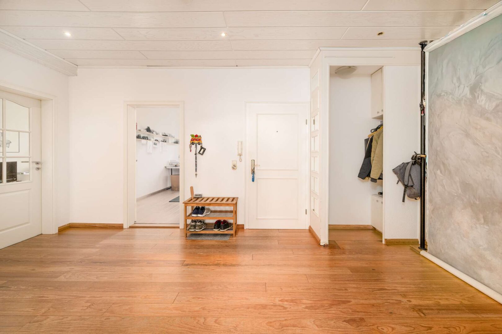 Die technische Ausstattung entspricht einem gepflegten Bestand und wurde über die Jahre hinweg instand gehalten. Eine Ölzentralheizung von Buderus aus dem Jahr 2001 sorgt zuverlässig für Wärme in der kalten Jahreszeit, die Warmwasserversorgung erfolgt über Durchlauferhitzer. Die Fenster sind zweifach verglast und wurden 1976 sowie 1999 erneuert, was für ausreichende Wärmedämmung und Schallschutz sorgt. Die Elektrik ist dreiadrig ausgeführt, eine Gegensprechanlage ist vorhanden und bietet zusätzliche Sicherheit. Diese solide Bausubstanz bildet eine gute Grundlage für langfristiges Wohnen.