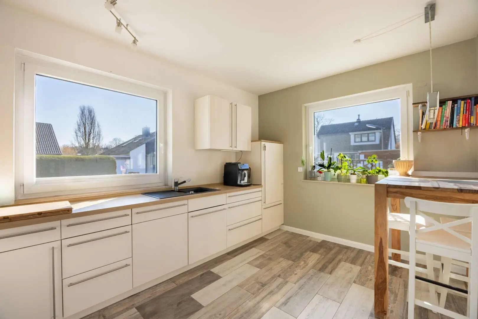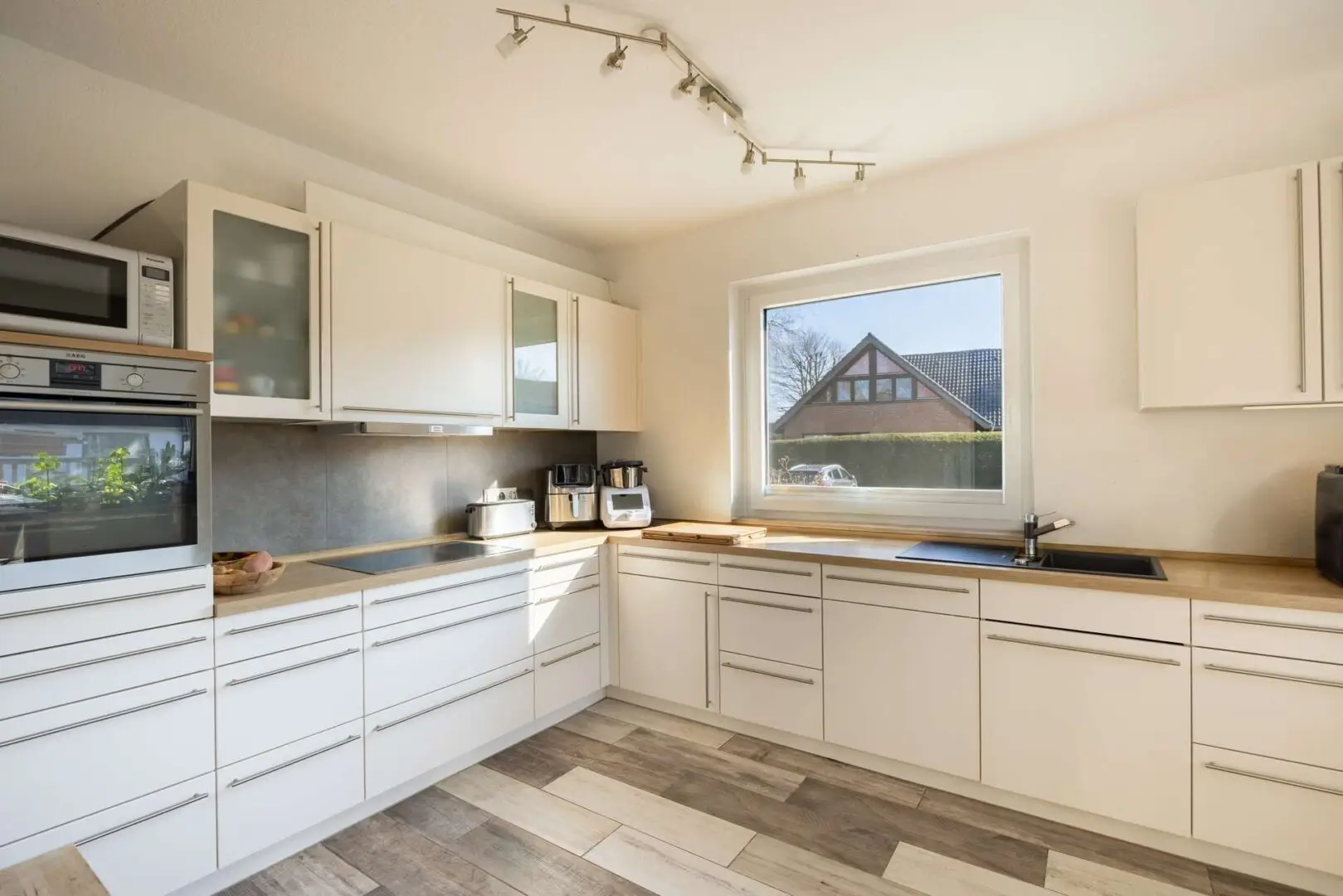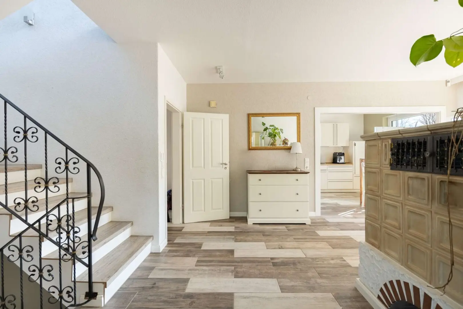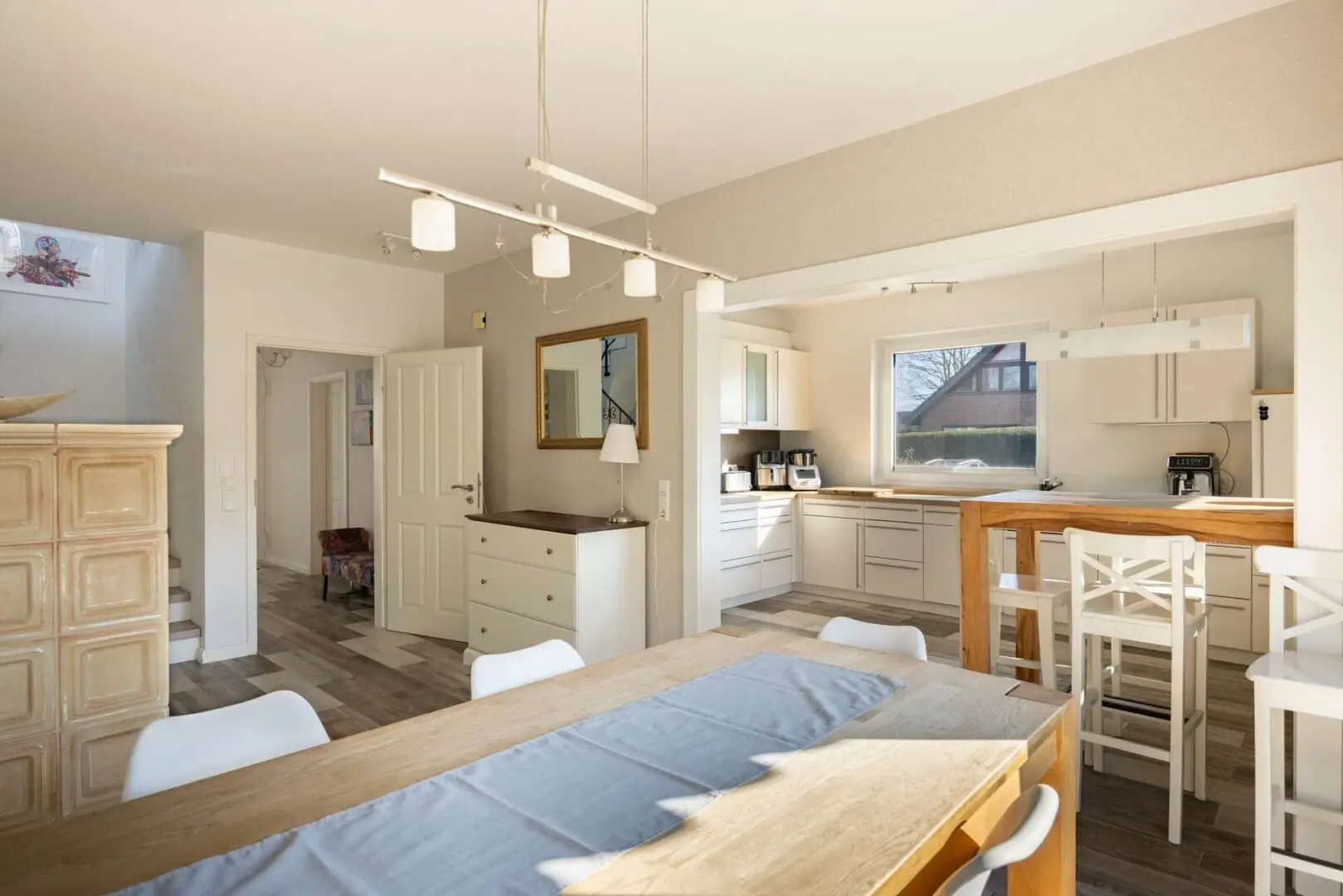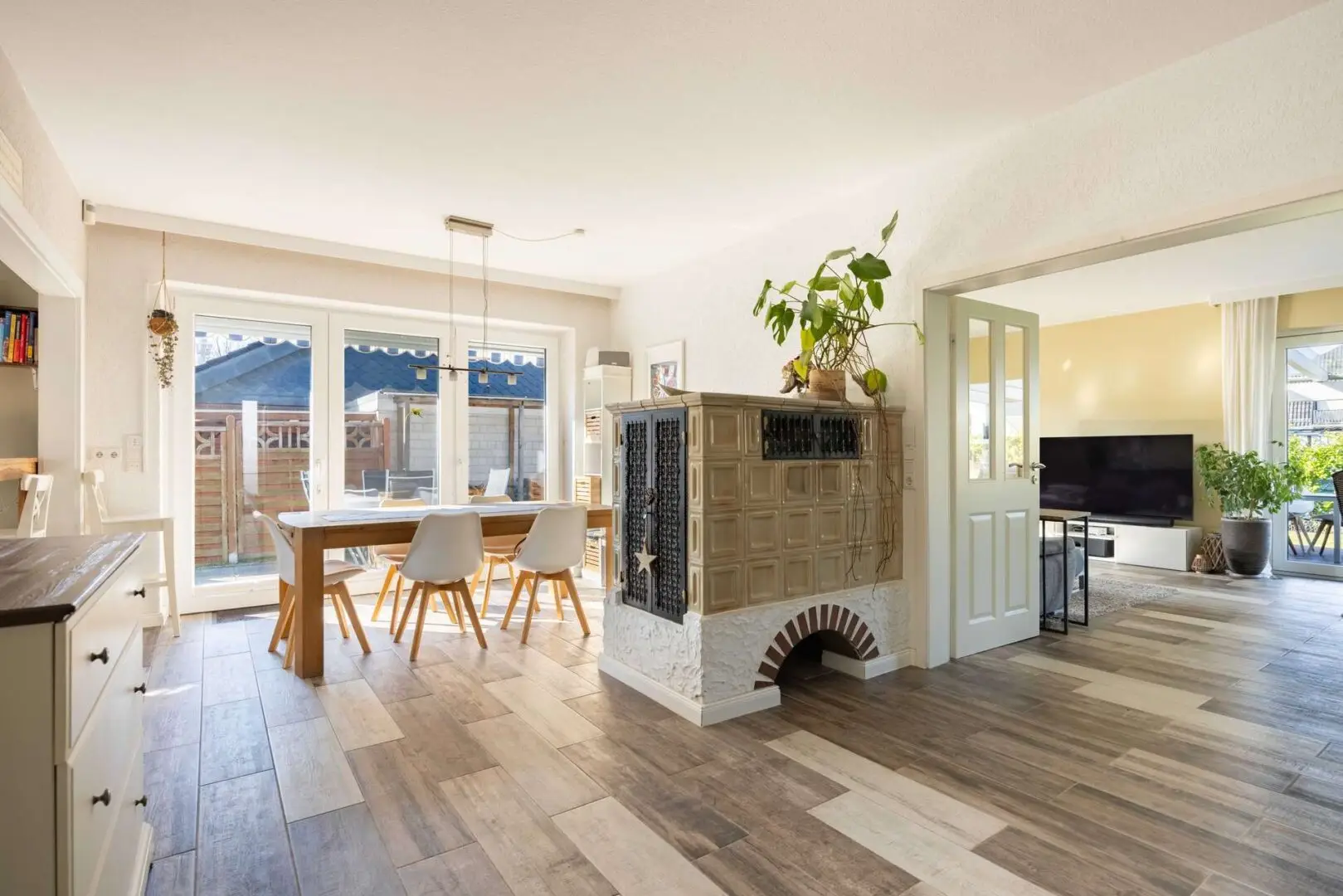 • Einbauküche (Bj. 2016) mit angrenzendem Esszimmer und Kachelofen
