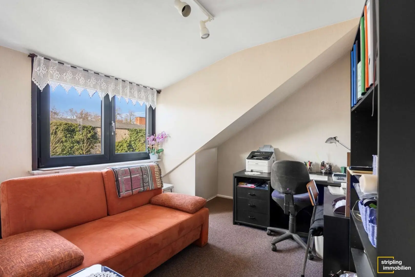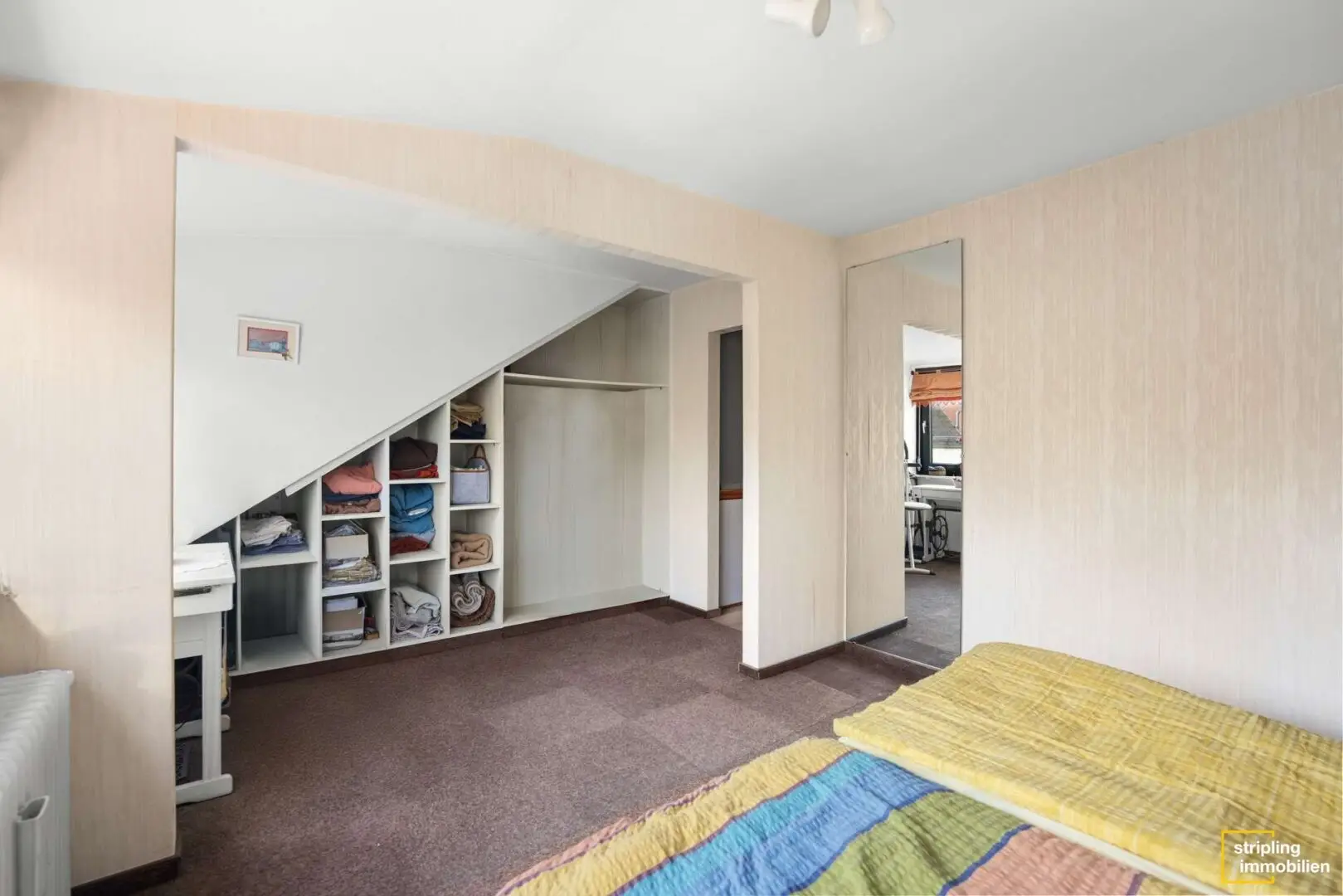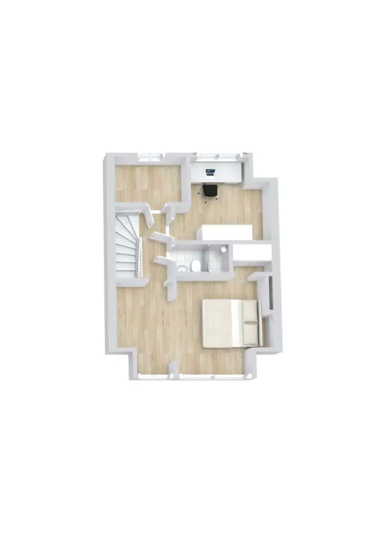 Das Dachgeschoss ist sehr detailreich gestaltet. So hat das etwa 16,30 m² große Schlafzimmer zum Beispiel einen eigenen kleinen Ankleidebereich. Dachschrägen und Reste von ehemaligen Trennwänden tragen zur Gemütlichkeit bei. Außerdem gibt es ein weiteres kleines Badezimmer mit Dusche. Dieses ist ebenso wie alle anderen Badezimmer des Hauses modernisierungsbedürftig, aber es ist für die zukünftige Nutzung perfekt, dass die Anschlüsse bereits vorhanden sind. Ein weiteres etwa 8,30 m² großes Zimmer kann beispielsweise als Büro genutzt werden. Der Ausblick aus dem Dachfenster ist ideal, um mal abzuschalten und die Sinne zu beflügeln. Ein etwa 4,45 m² großer Abstellraum bietet Platz für die Wäsche oder Haushaltsgeräte.