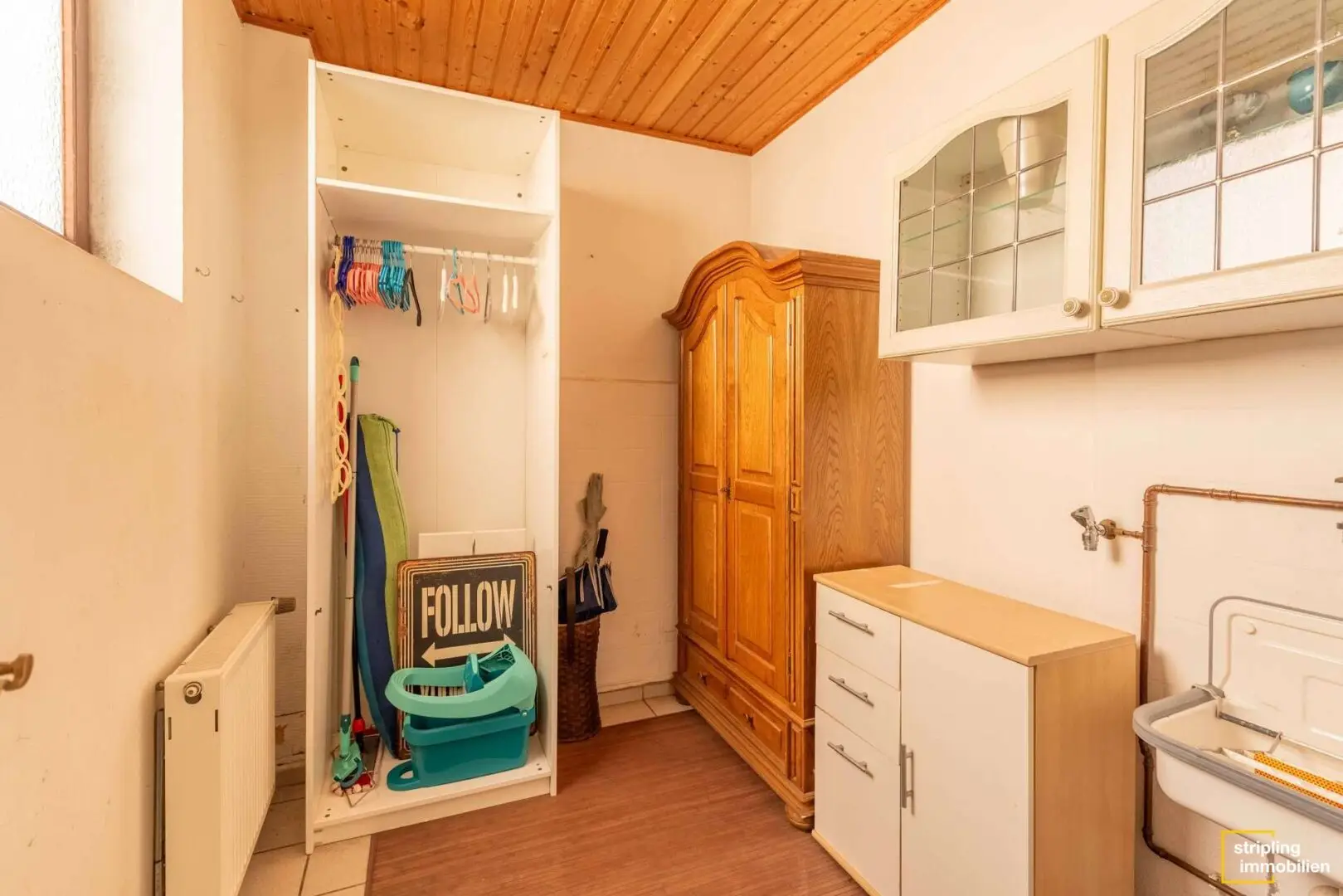 Außerdem befindet sich auf der rechten Seite eine weitere Tür, die in einen kleinen Flur führt, von dem Sie wiederum zur etwa 5,45 großen Waschküche gelangen.