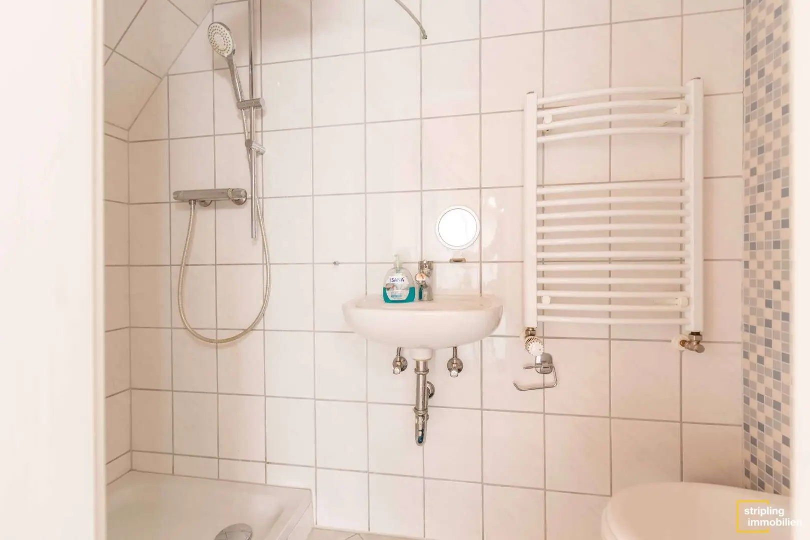 • 1 Badezimmer mit Dusche, Handtuchheizkörper und WC