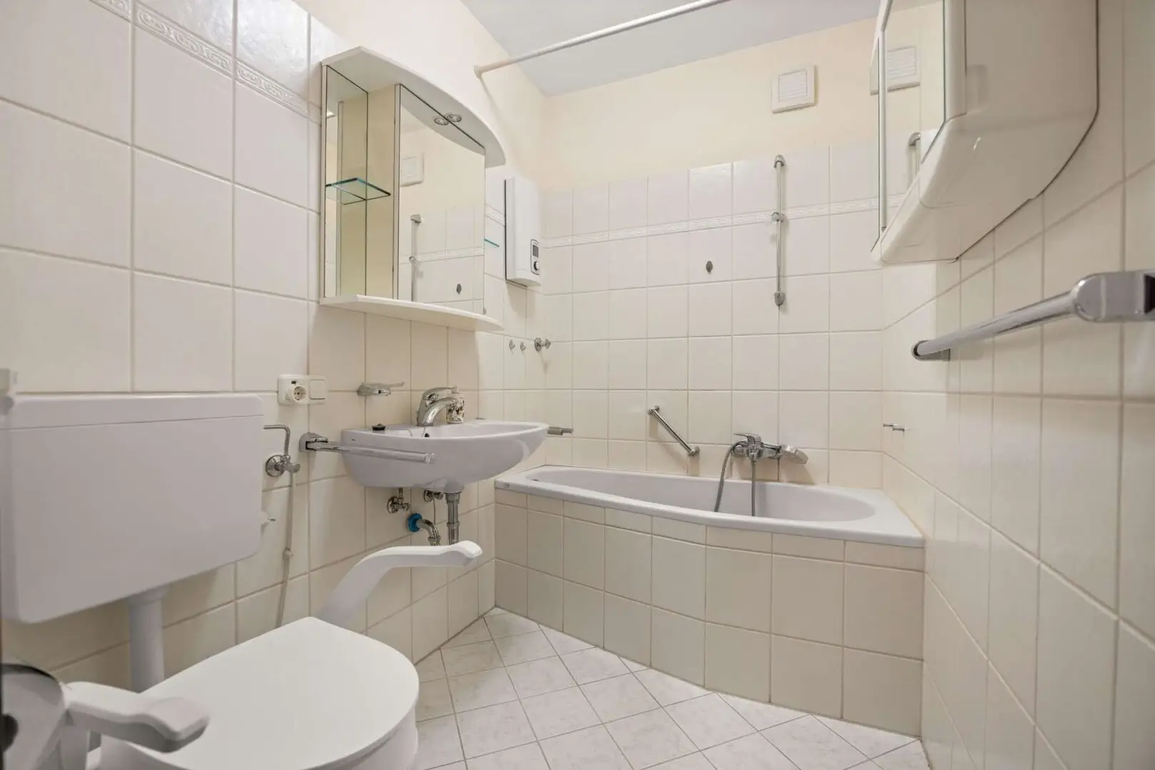 • 1 Badezimmer mit Toilette, Waschbecken, Duschwanne im OG