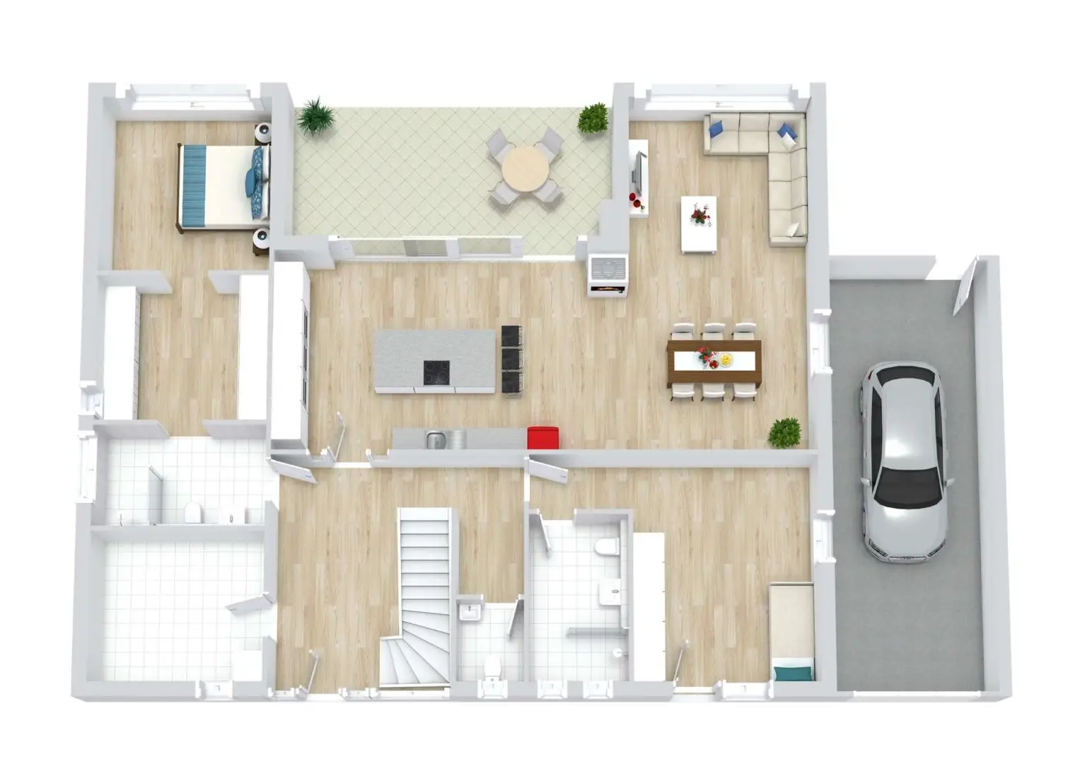 Und auch draußen ist es schön: Eine großzügig überdachte Terrasse kann als Wohnraumerweiterung betrachtet werden, denn sie bietet Schutz vor Regen und Schnee, sodass Sie die frische Luft zu jeder Jahreszeit genießen können. Zudem bestehen dank der Überdachung hervorragende Gestaltungsmöglichkeiten, da auch die Gartenmöbel, ein Grill oder ein Kühlschrank vor der Witterung geschützt werden.