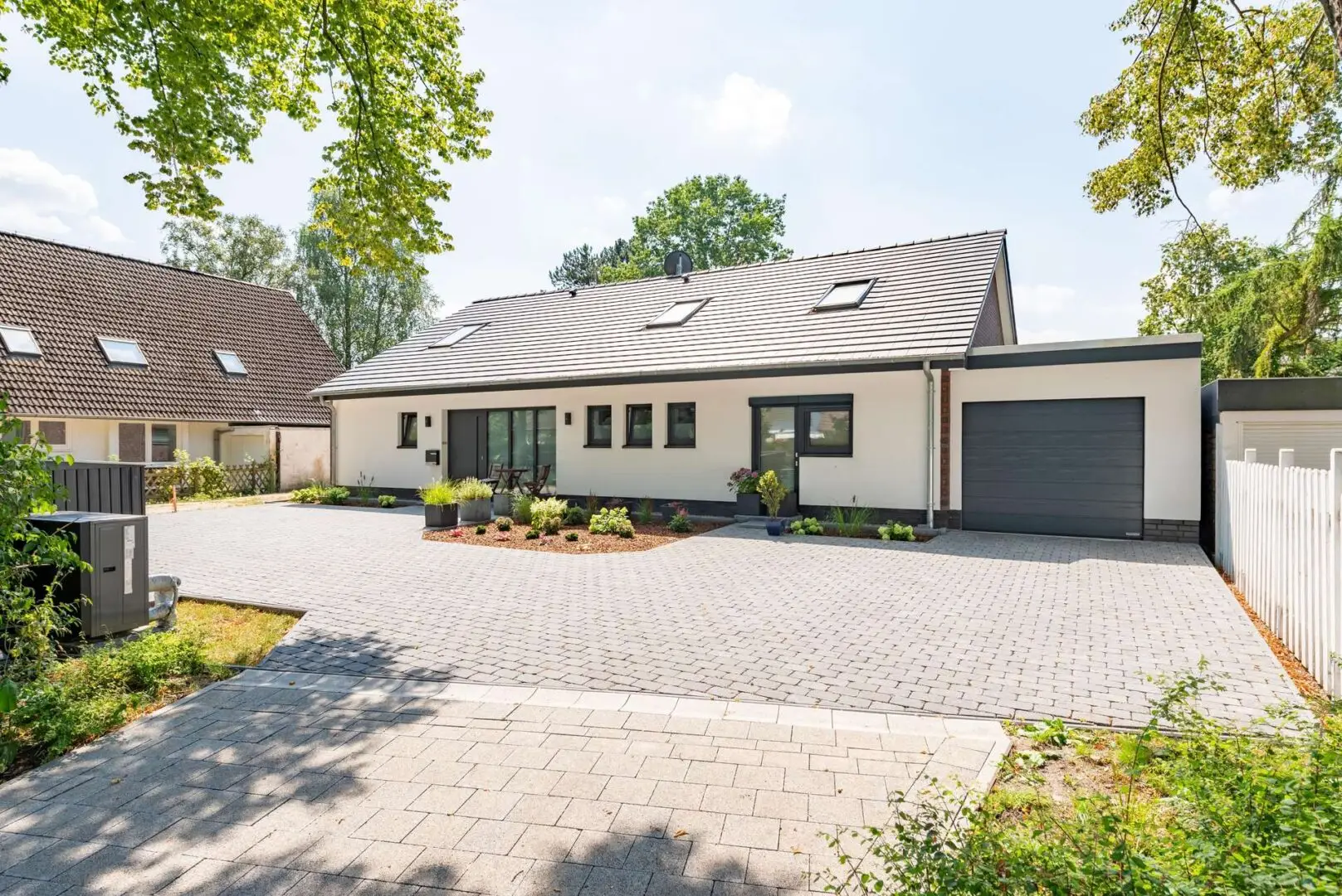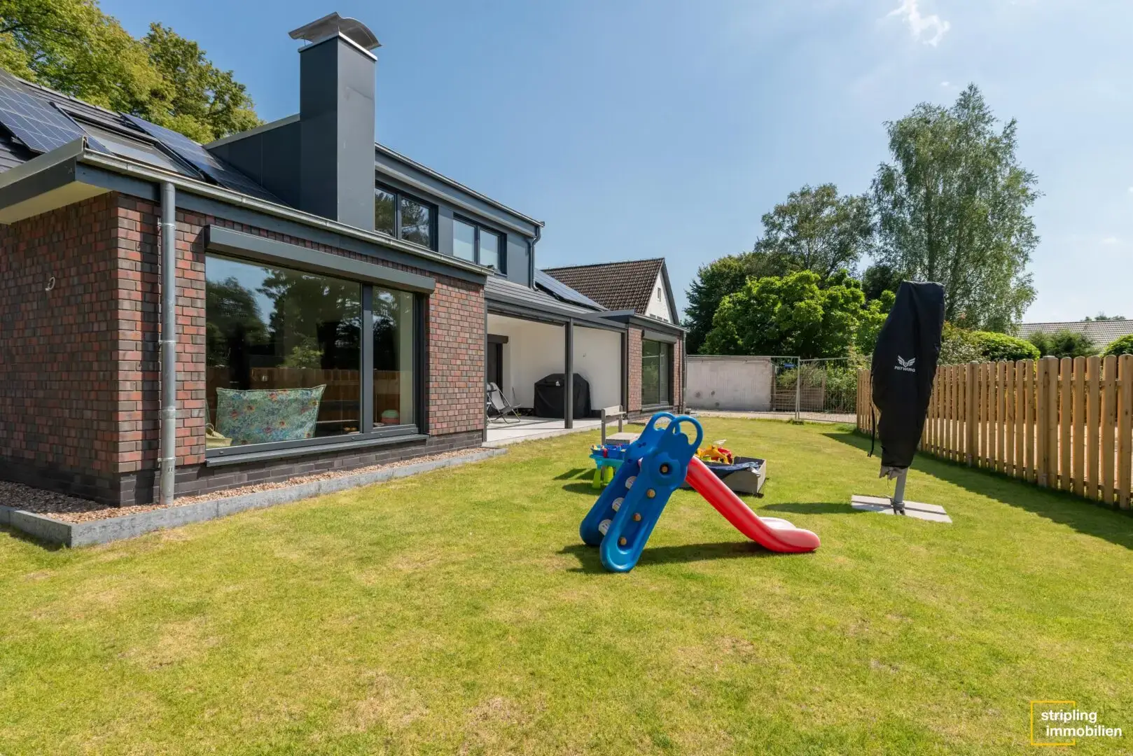 Die technischen Highlights dieses luxuriösen Einfamilienhauses sind: eine PV-Anlage mit Speicher, eine Luftwärmepumpe, eine Garage mit Wallbox sowie eine Fußbodenheizung – ein System, das sich perfekt ergänzt und die neuen Eigentümer unabhängig von fossilen Brennstoffen macht.