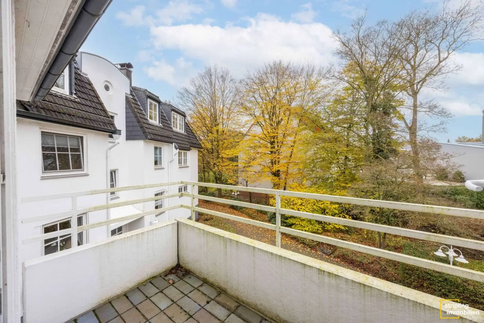 Die beiden Badezimmer – Hauptbadezimmer mit Dusche, Badewanne, Waschbecken, WC und Waschmaschinenanschluss sowie das Gäste-WC – sind gegenüberliegend platziert und neutral gefliest, sodass Sie durch Dekoration und Handtücher Farbakzente ganz nach Ihren Wünschen setzen können. Links neben dem Badezimmer befindet sich ein etwa 15,88 m² großes Schlafzimmer. Auch dies ist quadratisch geschnitten und überrascht mit einem kleinen Highlight: einem Balkon in Nordausrichtung. Eine wunderbare Vorstellung, direkt nach dem Aufstehen die frische Luft genießen zu können, oder?