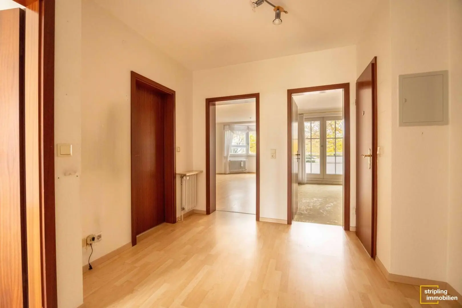 Die Wohnung ist gepflegt, hell und sehr vorteilhaft geschnitten. So ist der zentral liegende Flur zum Beispiel mit allen Zimmern direkt verbunden – es gibt also keine Durchgangszimmer. Die Wohnfläche des Flurs beträgt etwa 8,99 m² und bietet ausreichend Stellfläche für eine Garderobe oder kleine Kommoden, damit Sie Jacken, Schuhe, Schlüssel und vieles mehr ordentlich aufhängen bzw. verstauen können.