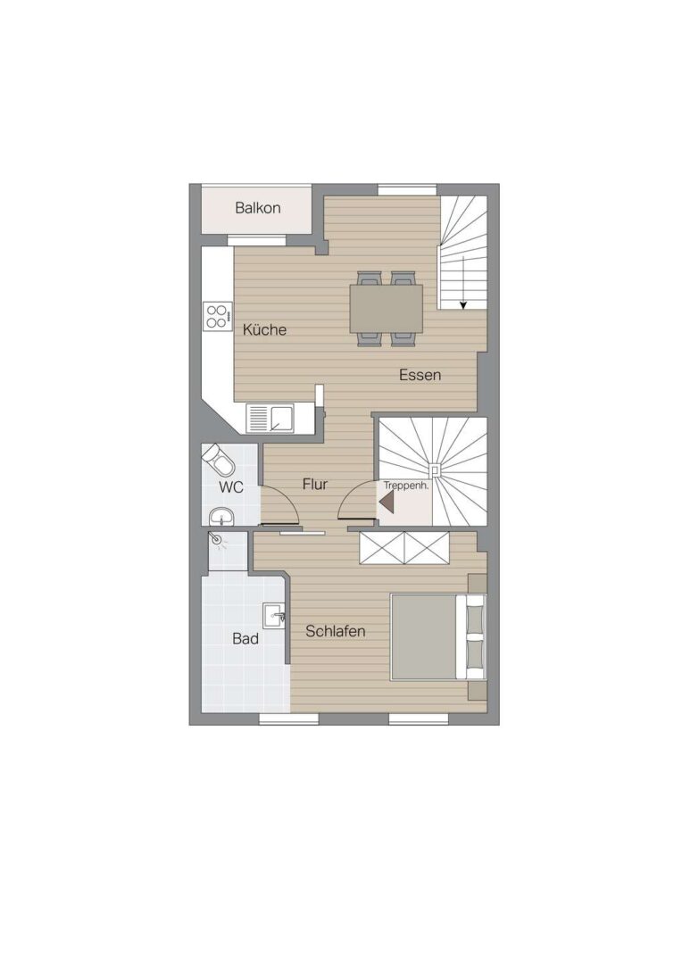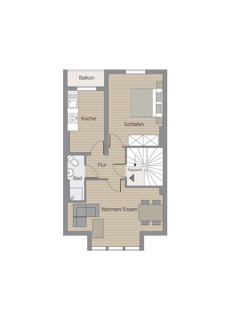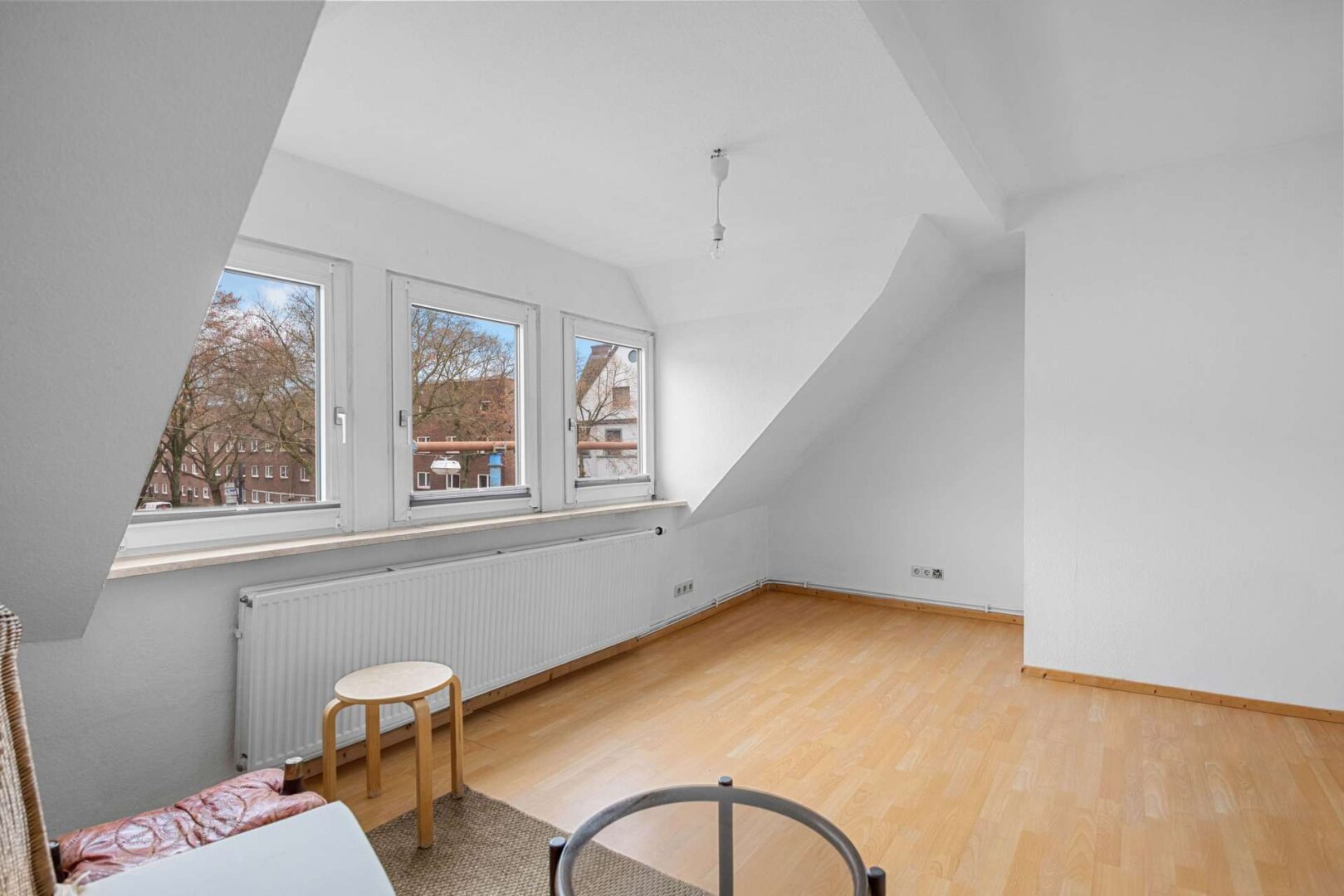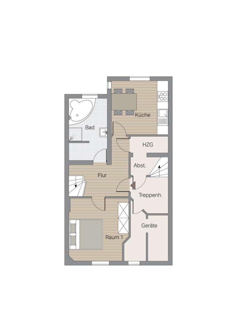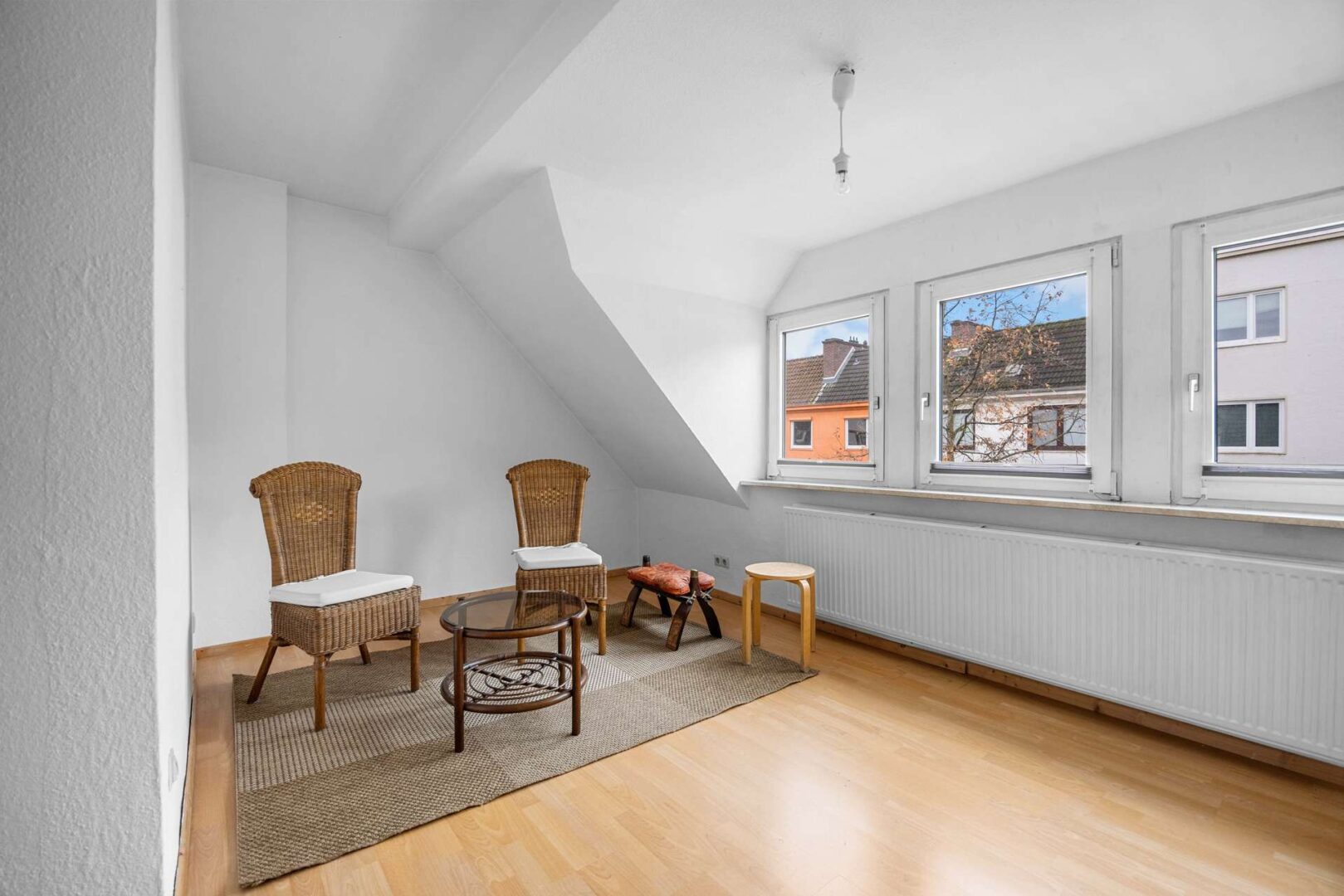 Im ersten Obergeschoss liegen weitere Wohnräume mit gut nutzbaren Proportionen. Die Zimmer bieten ausreichend Platz für Wohnen, Arbeiten oder Schlafen und bilden den Mittelpunkt der zugehörigen Maisonette-Wohnung. Durch ihre Größe und Anordnung eignen sie sich für unterschiedliche Alltagsmodelle – vom klassischen Wohnbereich bis hin zu kombinierten Nutzungen, etwa Wohnen und Homeoffice. Das zweite Obergeschoss schließt direkt an und ergänzt das Raumangebot um zwei weitere Zimmer. Diese eignen sich als Schlafräume, Arbeitszimmer oder persönliche Rückzugsbereiche und bieten aufgrund ihrer Lage innerhalb des Hauses eine angenehme Distanz zu den Hauptwohnräumen.