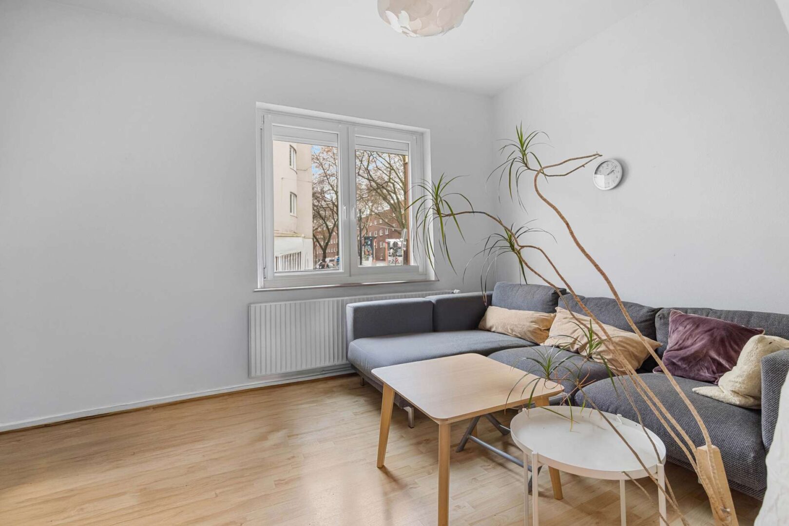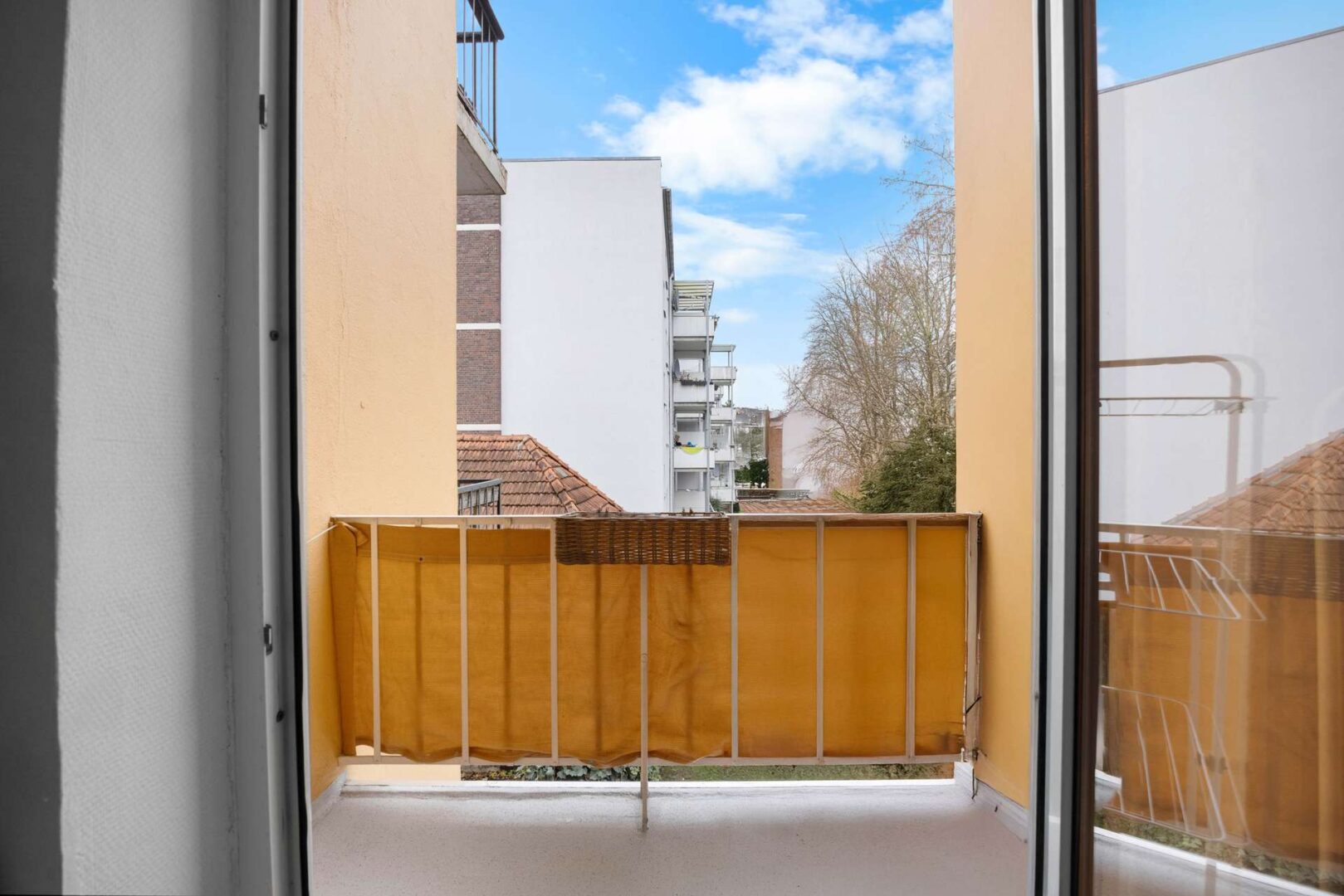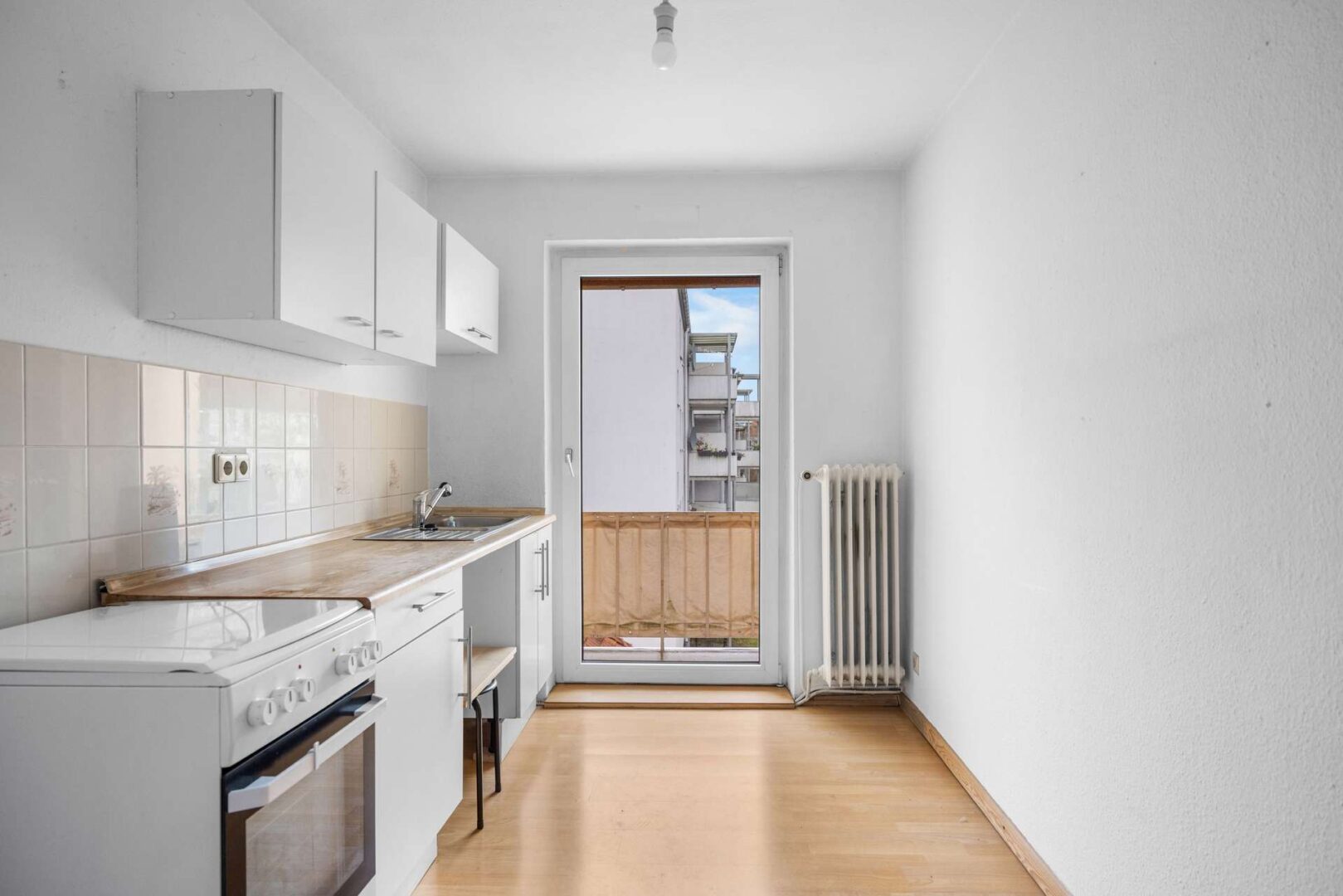 Der Garten hinter dem Haus bildet eine kompakte Grünfläche, die sich gut in den Alltag integrieren lässt. Er ist direkt vom hinteren Wohnraum aus erreichbar und eignet sich sowohl für kleine Sitzbereiche als auch für einfache gärtnerische Nutzungen. Seine Lage im Innenbereich der Häuserzeile sorgt für eine geschützte Atmosphäre, die den städtischen Charakter angenehm ergänzt.