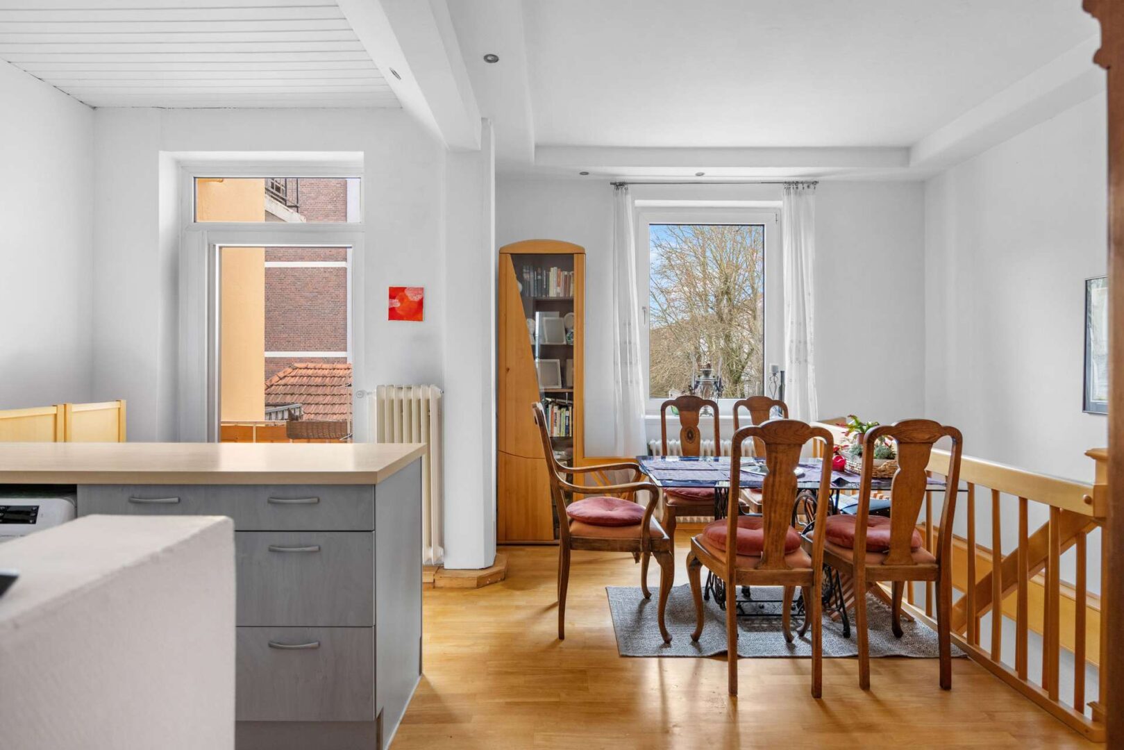 In der Südervorstadt steht dieses Reihenmittelhaus aus dem Jahr 1926, das sich über drei Wohnetagen, einen Keller und einen ausgebauten Spitzboden erstreckt. Die Bauweise entspricht dem typischen Bremer Stil dieser Zeit: kompakte Grundflächen, eine klare Abfolge der Räume und eine Struktur, die unterschiedliche Nutzungsideen zulässt. Zwei Einheiten werden frei übergeben, sodass sowohl Selbstnutzer als auch Kapitalanleger verschiedene Modelle verfolgen können – vom klassischen Wohnen über die Zusammenlegung zu einer größeren Einheit bis hin zur teilweisen Vermietung. Die Innenräume sind gepflegt und bieten eine solide Grundlage, um bestehende Raumaufteilungen zu übernehmen oder nach eigenen Vorstellungen weiterzuentwickeln.