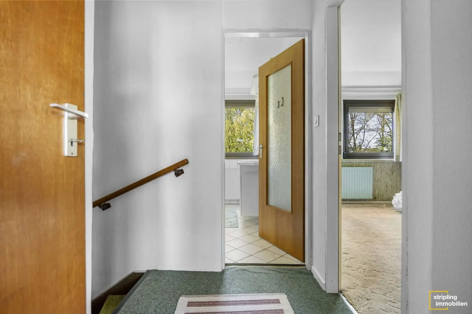 Nun zum Wohnbereich im Ober- und Dachgeschoss mit Gaube: Wie bereits erwähnt, erreichen Sie diesen über eine Treppe, die derzeit offen zur unteren Wohneinheit ist – was sich bei Bedarf problemlos ändern lässt.