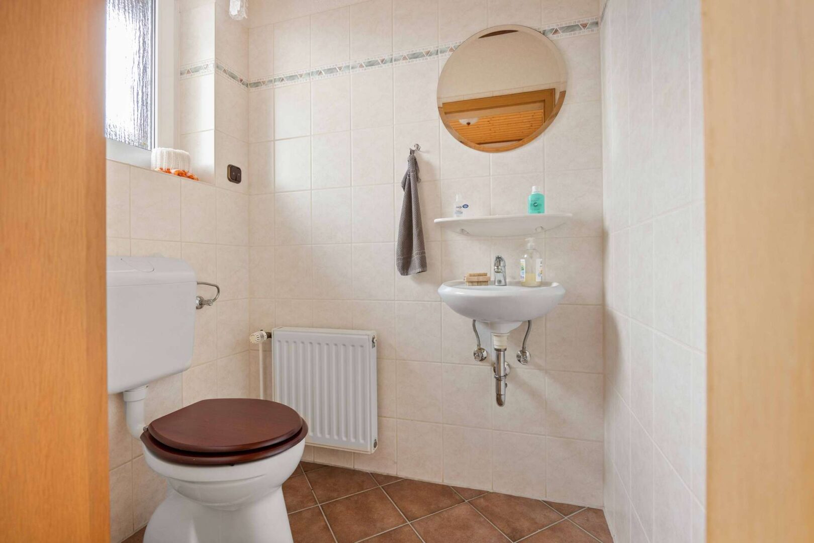 • Badezimmer im EG mit Dusche, WC, Waschbecken und Fenster