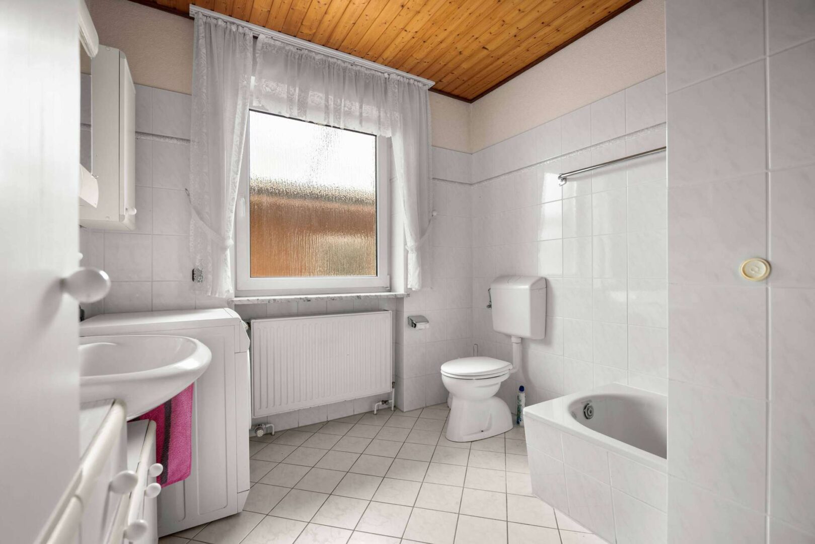 • Badezimmer im OG mit Badewanne, WC, Waschbecken und Fenster