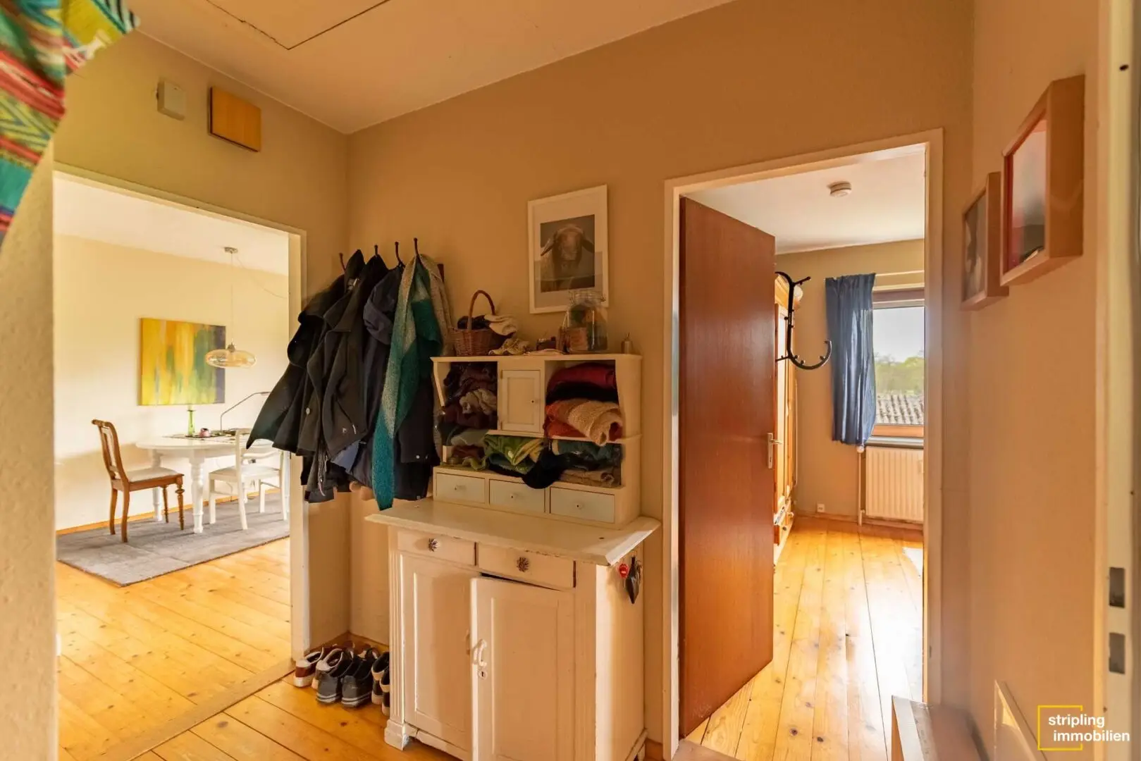 Die Wohnung I erstreckt sich über die gesamte Fläche des Erdgeschosses. Dabei handelt es sich um eine großzügig geschnittene Wohnung mit knapp 160 m² Wohnfläche. Die angeschlossene Werkstatt verfügt über eine Nutzfläche von knapp 100 m². Die beiden Lagerräume sind über Zugänge von außen erreichbar. Sie betreten die Wohnung durch einen Windfang, der Sie in eine innengelegene Diele mit Zugang zum Weinkeller führt. Die Diele ist der zentrale Ort der Wohnung. Auch wenn um sie herum alle weiteren Zimmer angeordnet sind, ist sie mehr als ein Durchgangszimmer, denn ein Kamin lädt zum Verweilen ein. Mit der richtigen Einrichtung kann aus ihr ein wunderschöner Leseraum oder ein Gesellschaftszimmer gezaubert werden.