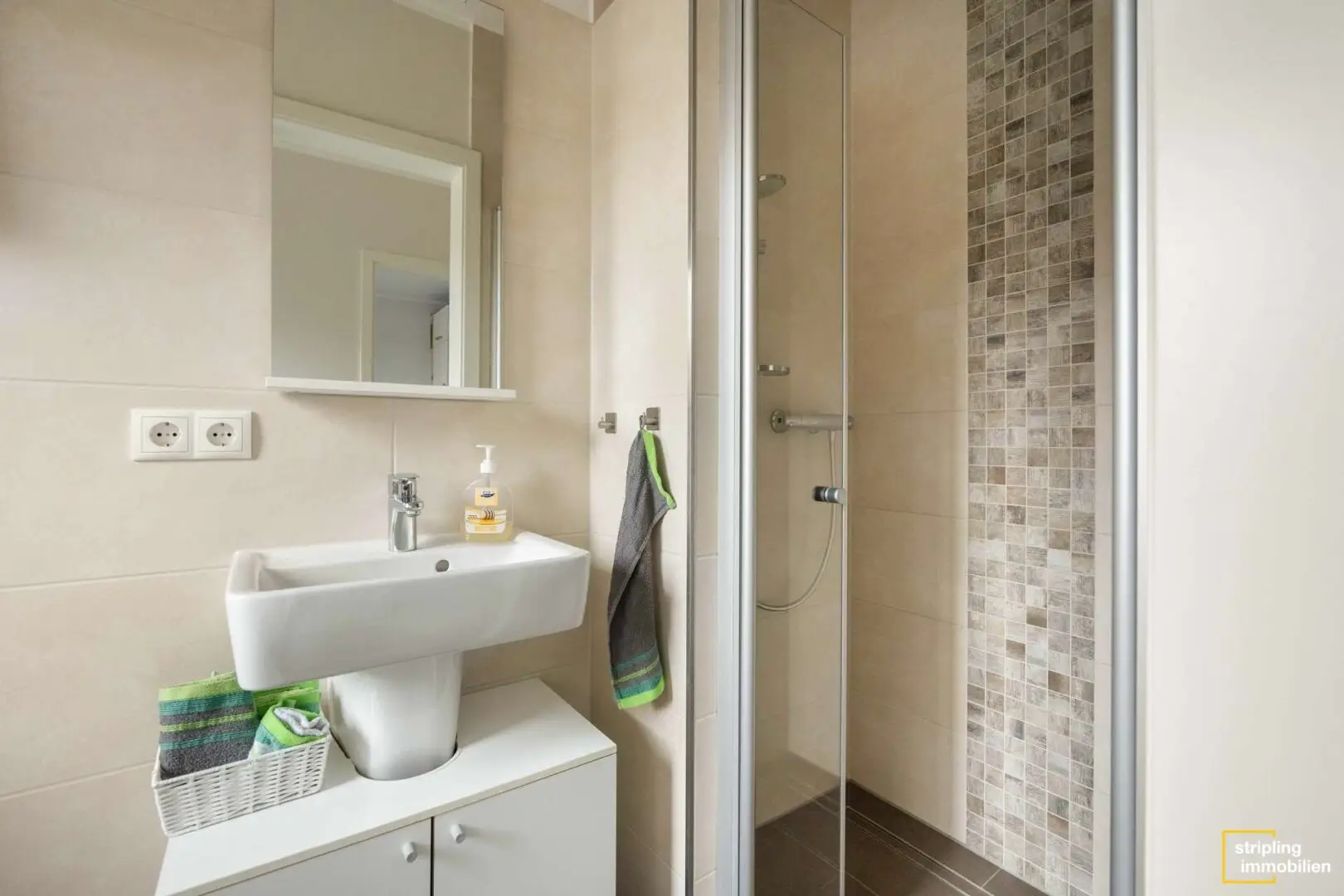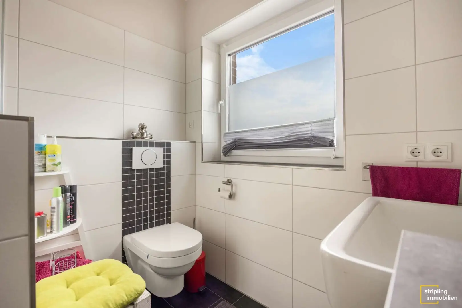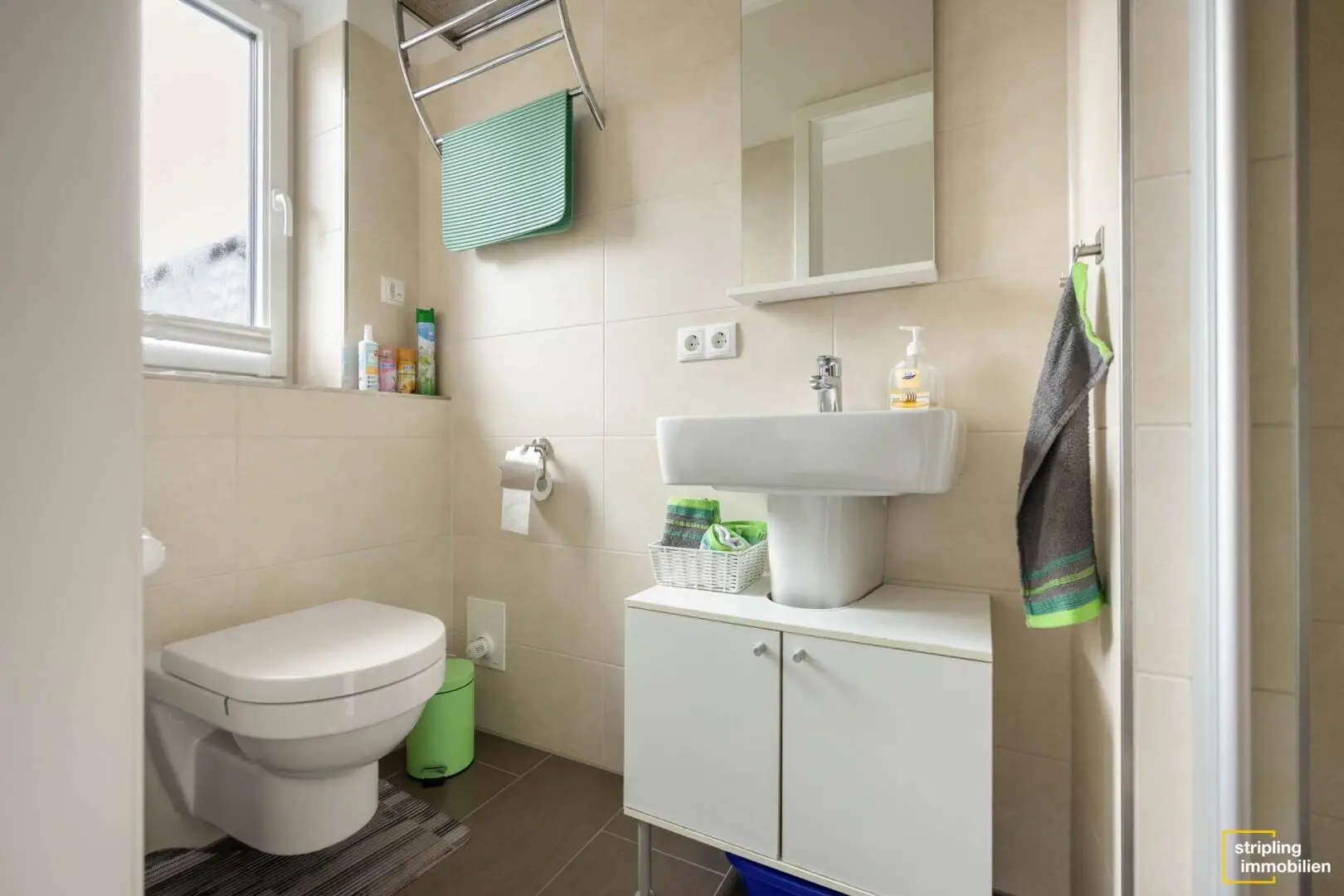 Lassen Sie uns nun die Zimmer im Detail betrachten. Hervorzuheben ist, dass das Haus mit zwei Badezimmern ausgestattet ist, einem Hauptbadezimmer und einem Gästebadezimmer. Beide Räume verfügen über eine Dusche, Waschbecken, WC und Fußbodenerwärmung. Es können also zwei Personen gleichzeitig duschen – ganz ohne Stress vor der Arbeit. Oder Sie bieten Gästen einen eigenen Bereich. Beide Badezimmer sind modern gefliest und haben ein Fenster, sodass sie gut belüftet werden können.