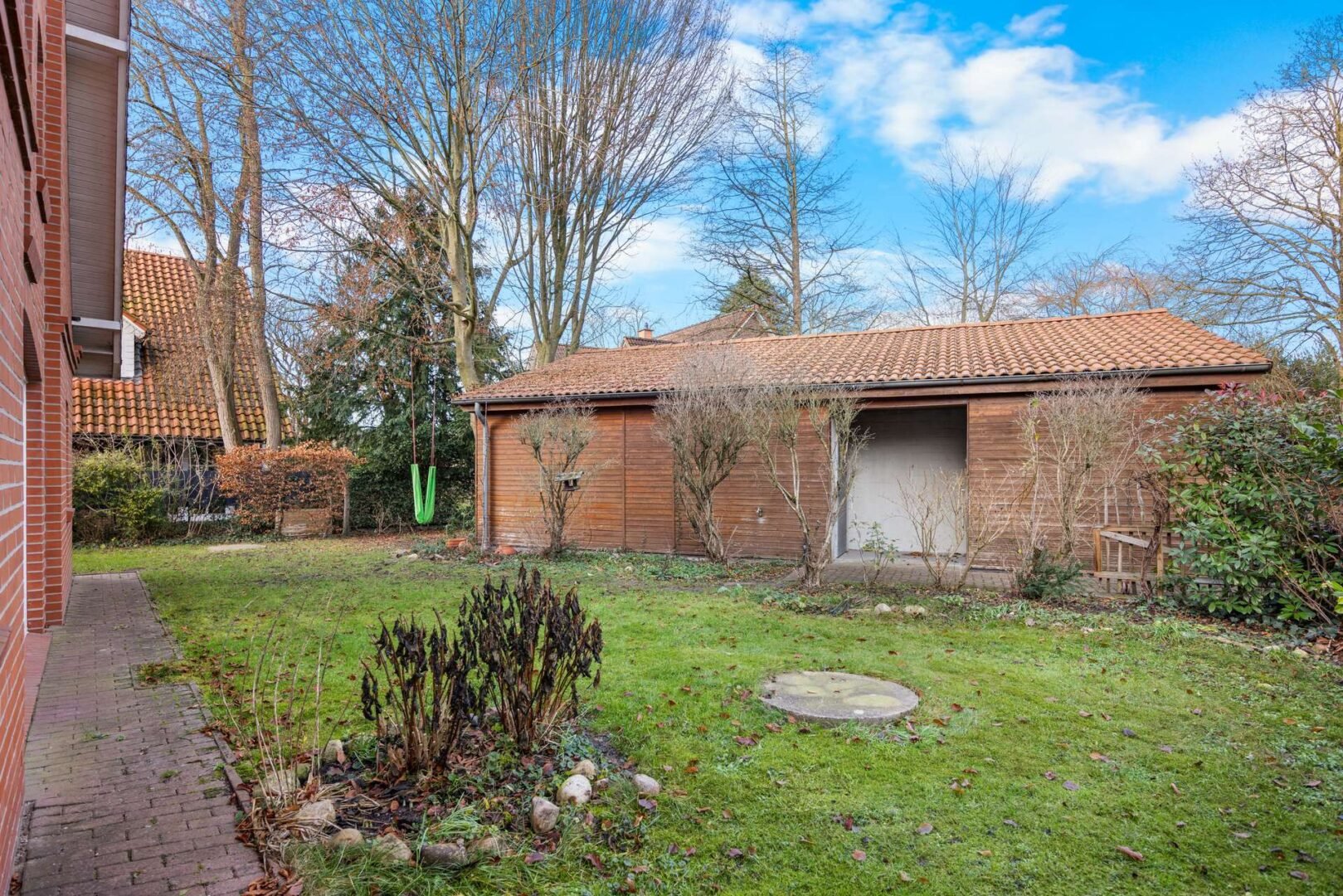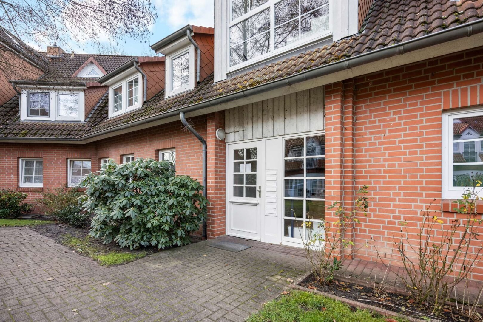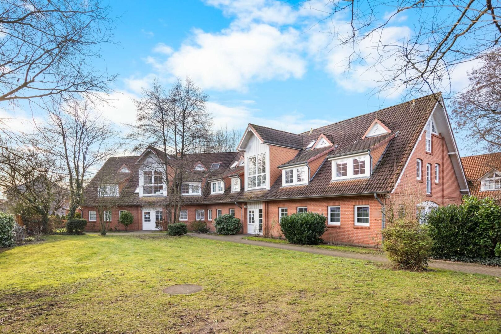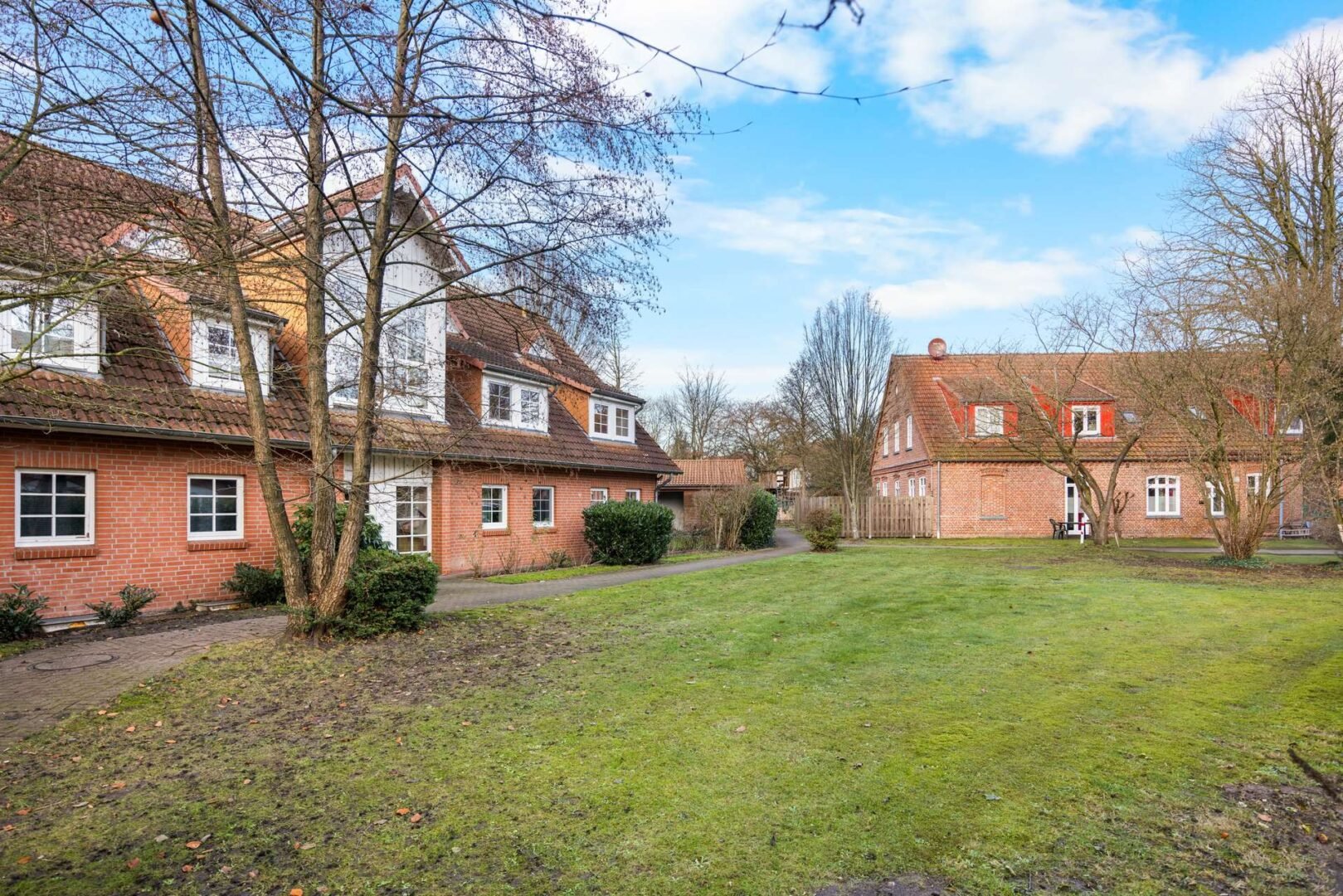 Der gemeinschaftliche Gartenbereich fügt dem Wohnerlebnis eine naturnahe Note hinzu. Die gepflegte Außenanlage mit Rasenflächen, Gehölzen und Wegen verbindet die einzelnen Gebäude harmonisch und schafft eine ruhige, fast dörfliche Stimmung – ein Ort zum Durchatmen nach einem langen Tag.