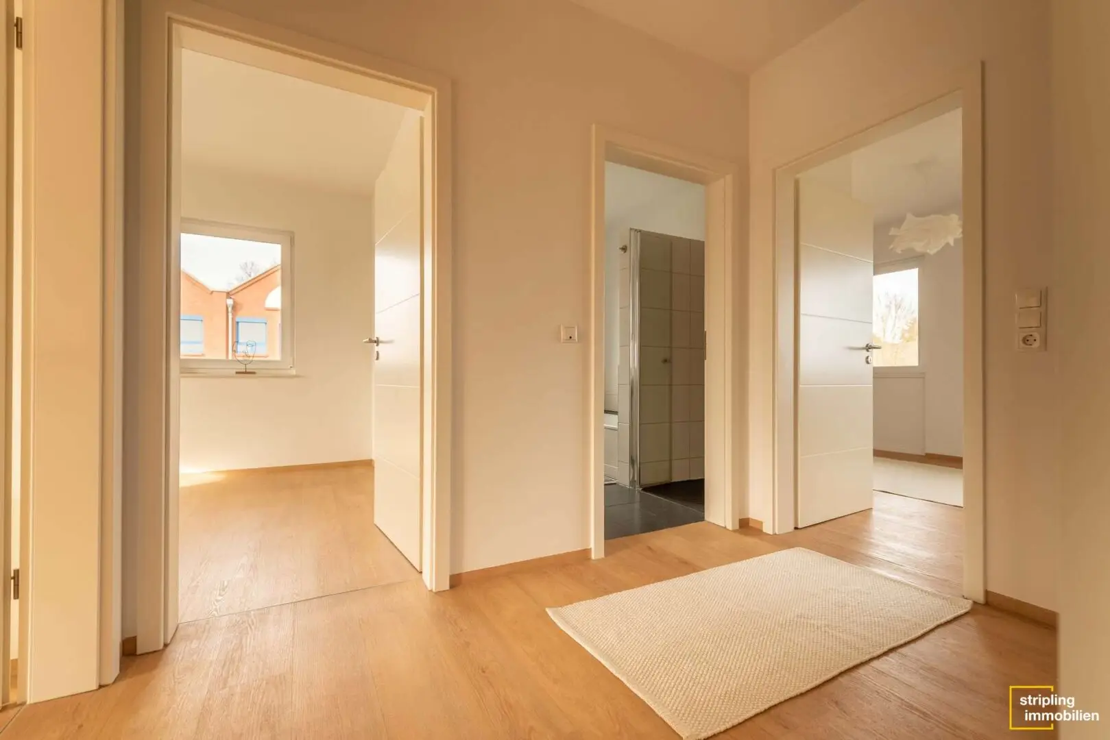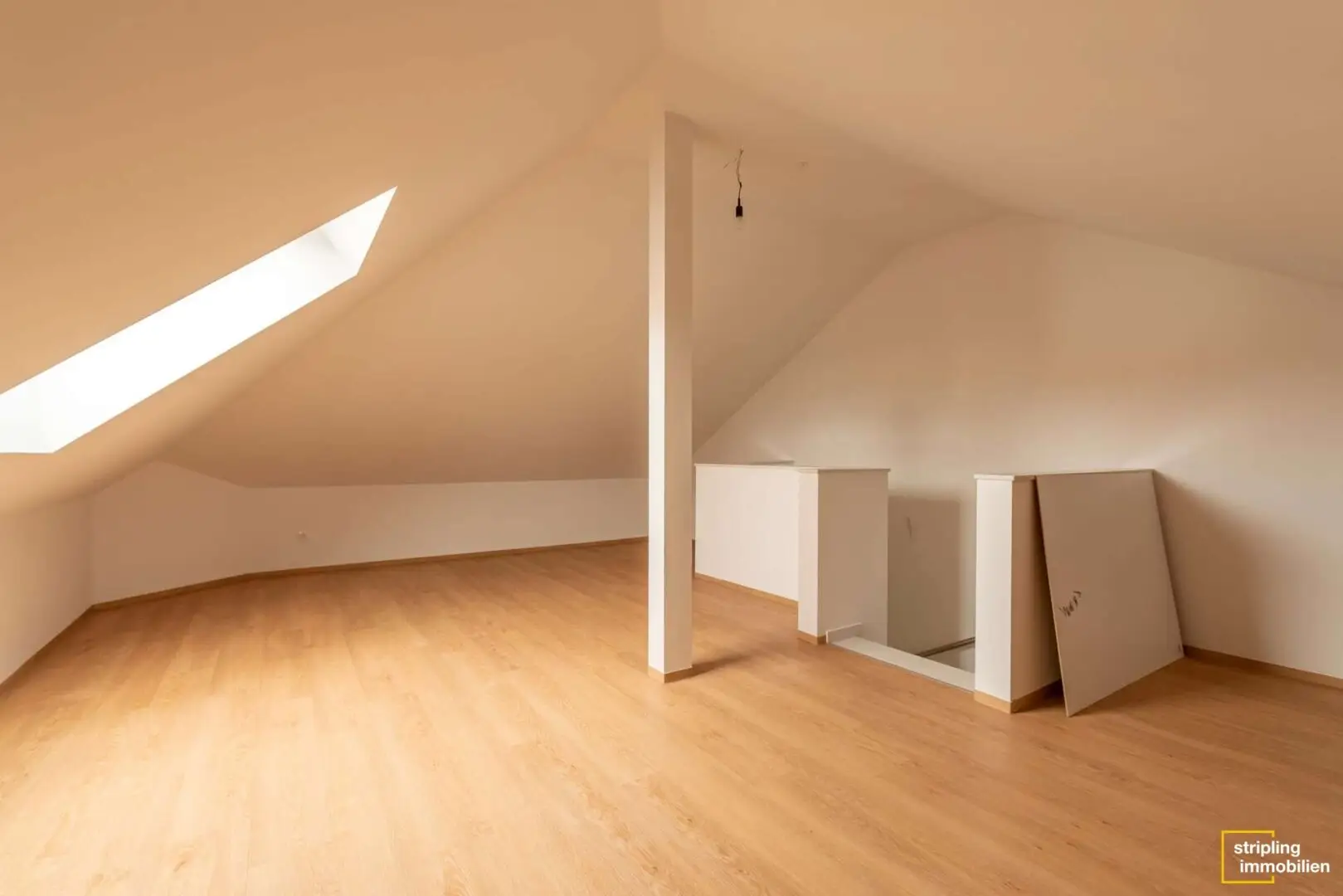 Die zweite Etage wartet mit insgesamt drei Schlafzimmern auf, die mit einem hochwertigen Vinylboden ausgestattet sind. Das Material ist äußerst pflegeleicht und besitzt gleichzeitig – täuschend echt – die Optik eines massiven Holzbodens. Üppige Fensterflächen durchfluten die Zimmer mit Licht und machen sie zu traumhaften Kinder-, Schlaf- oder Gästezimmern. Der größte Raum bietet mit seinem länglichen Schnitt sogar die Möglichkeit, einen Ankleidebereich optisch abzutrennen. Zwischen den Zimmern liegt das Hauptbad, das mit denselben Fliesen wie das Gäste-WC belegt ist. Es ist geräumig und verwöhnt seine Bewohner mit einer gemütlichen Badewanne und einer bodenebenen Dusche. Durch eine elegante Schiebetür hindurch gelangen Sie in den ausgebauten Spitzboden. Er hat fast 19 m² Wohnfläche und bezaubert mit seiner fesselnden Deckenstruktur. Wie könnten Sie diesen Raum nutzen? Bestimmt haben Sie schon eine Idee. Homeoffice, Hauptschlafzimmer oder Hobbyraum – es gibt viele Möglichkeiten.