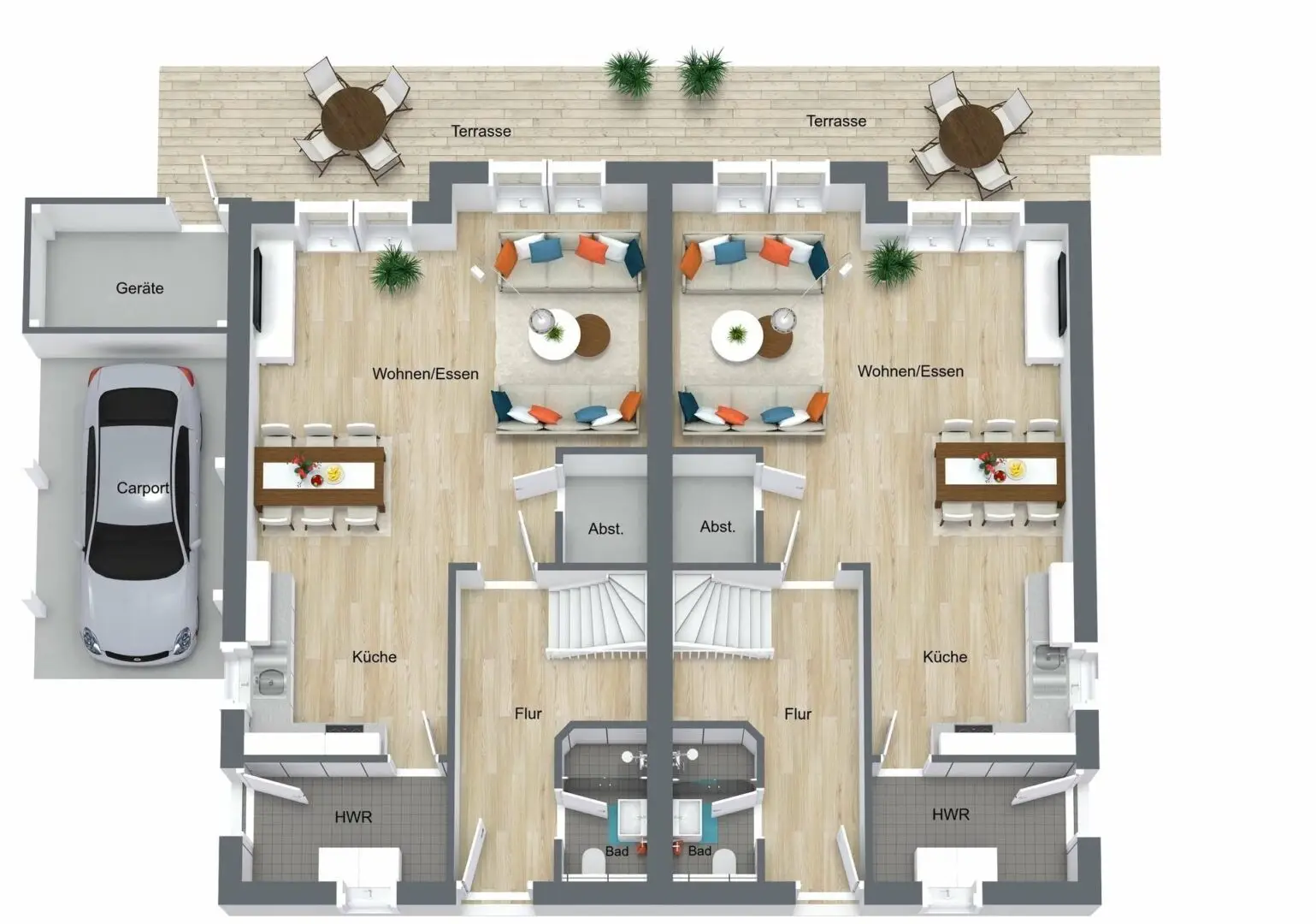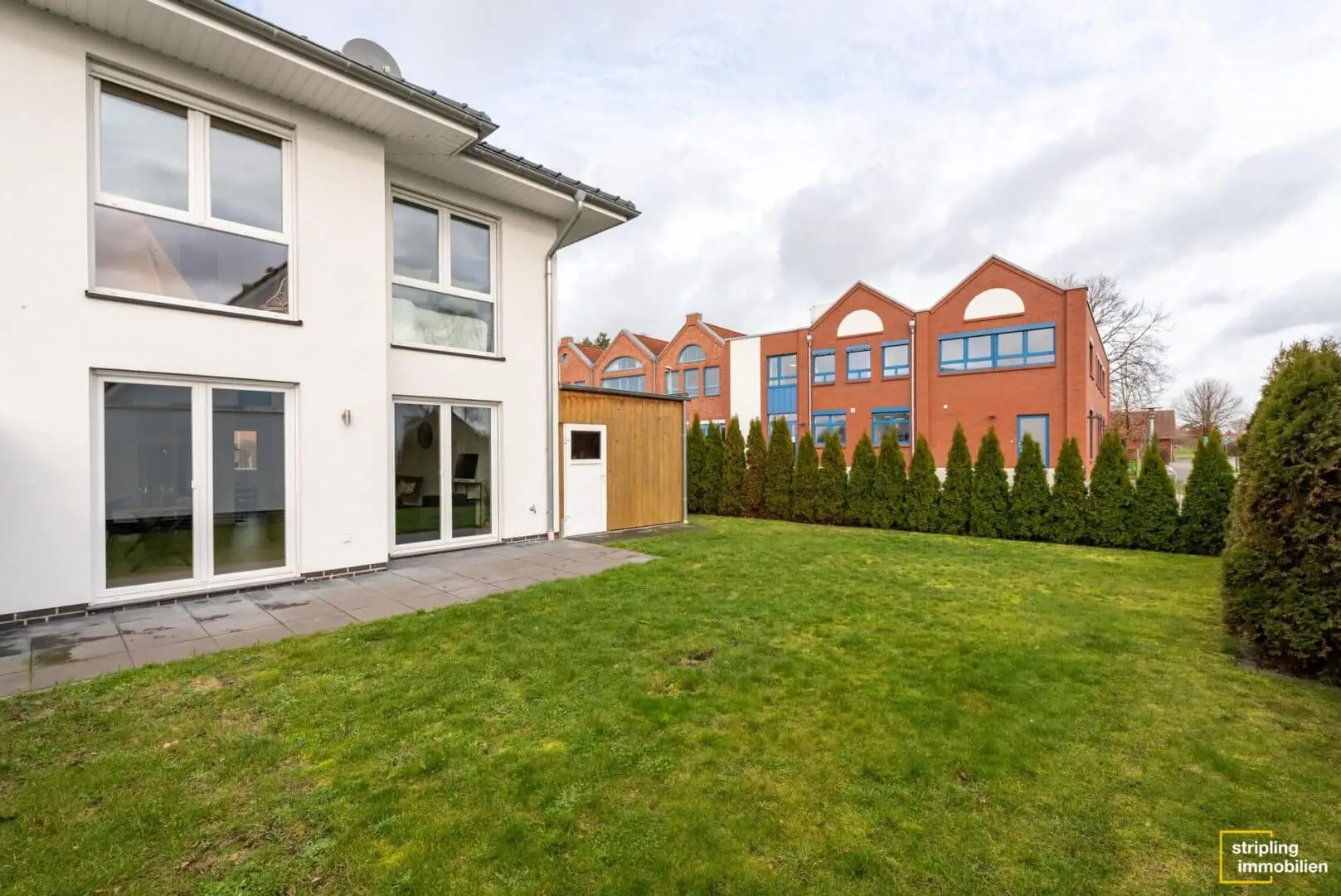 Am Rand eines hübschen Wohngebiets mit kleinen Einfamilienhäusern liegt diese Wohlfühloase für Ihre Familie. Es handelt sich um eine Doppelhaushälfte im Stil einer Stadtvilla mit zwei Vollgeschossen und einem anthrazitfarbenen Walmdach. Dieses Haus bietet viel Platz für Mensch und – selbstverständlich auch – Haustier auf über 142 m². Selbst für Fahrzeuge stehen ein Carport und ein Außenstellplatz auf der gepflasterten Einfahrt zur Verfügung. Kommen Sie mit auf eine schriftliche Reise durch das Haus und sehen Sie sich an, was es Ihnen zu bieten hat:
