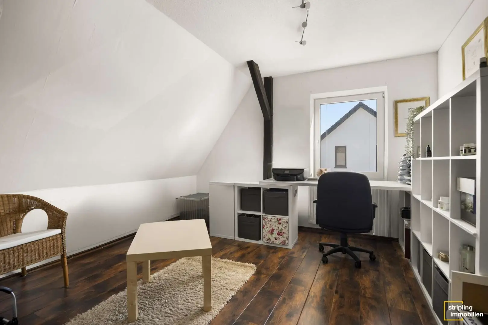 Die Dachgeschosswohnung mit ca. 80 m² Wohnfläche ist derzeit vermietet und begeistert durch ihre charmanten Details: Der Wohnbereich mit Kamin und sichtbaren Deckenbalken verleiht dem Raum eine warme, einladende Atmosphäre. Vom Essbereich aus führt der Weg auf den Balkon mit Nordostausrichtung, der zum Frühstück in der Morgensonne einlädt. Zwei Schlafzimmer, ein Büro, eine kompakte Küche und ein modernes Tageslichtbad komplettieren das gemütliche Obergeschoss.