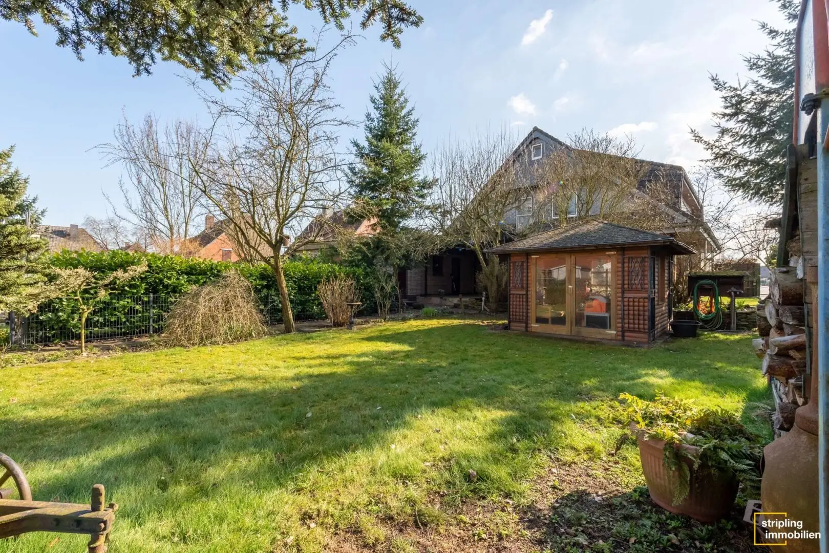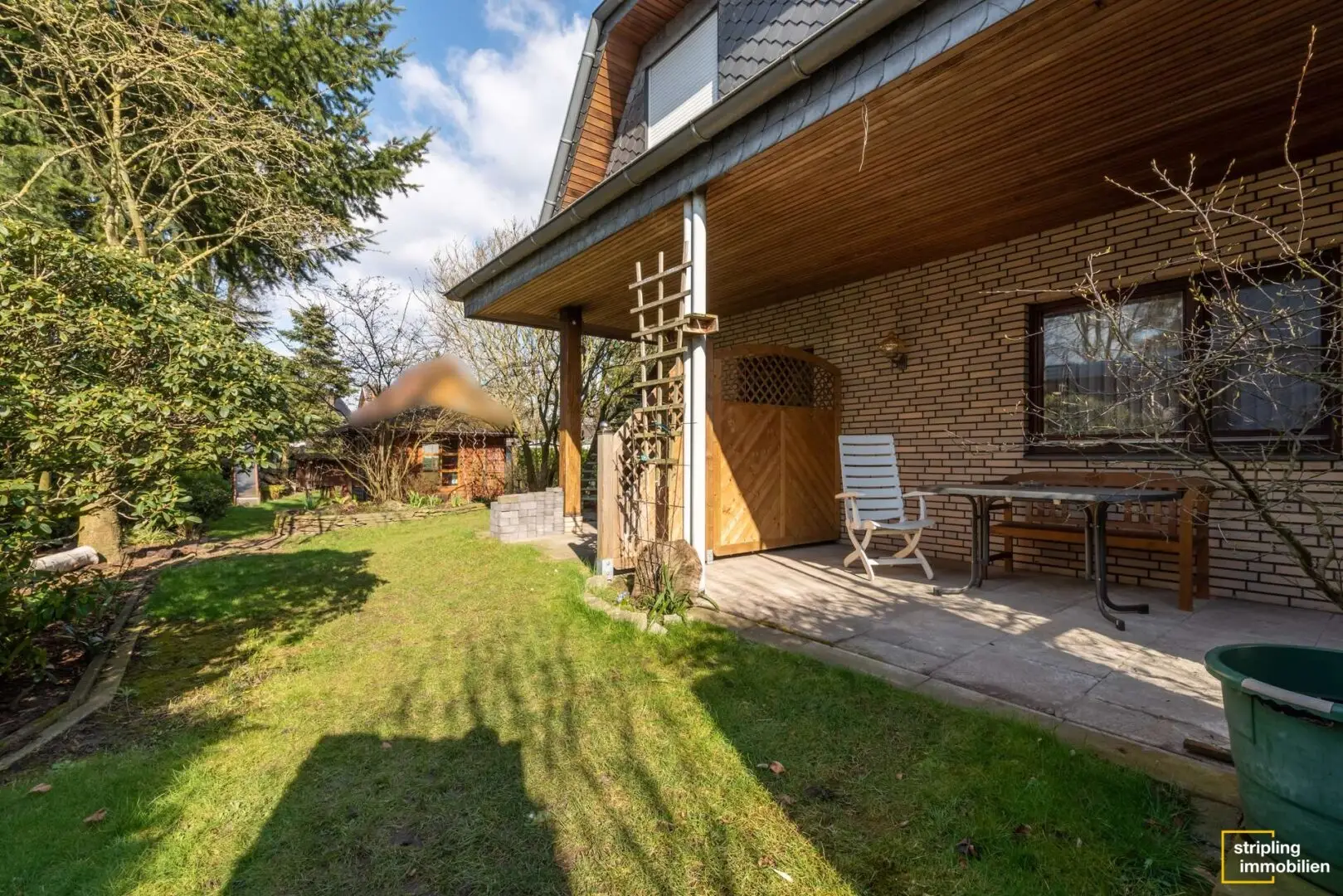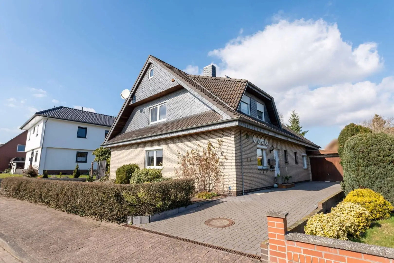 Das hübsch verklinkerte Haus steht auf einem weitläufigen Grundstück, begleitet von einer Garage und mehreren Stellplätzen. Die lange Einfahrt wäre ideal für kleine Bobbycarfahrer oder die Pflege des Familienautos. Hinter dem Gebäude wartet ein schön gewachsener Garten mit Gerätehäuschen auf die neuen Bewohner. Hier steht nicht ein Haus direkt auf dem nächsten und so finden Sie in diesem Stückchen Grün Ruhe und Geborgenheit. Es ist groß genug für Spielgeräte, einen Pool oder auch die Sommerparty mit vielen Freunden.