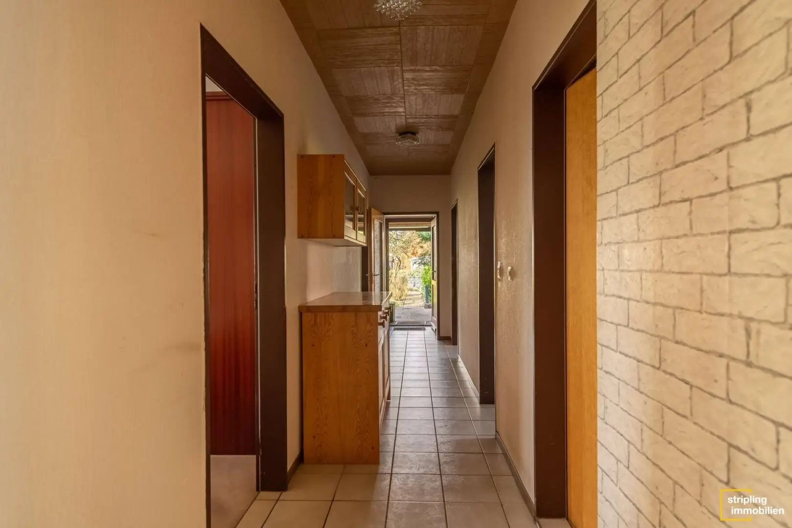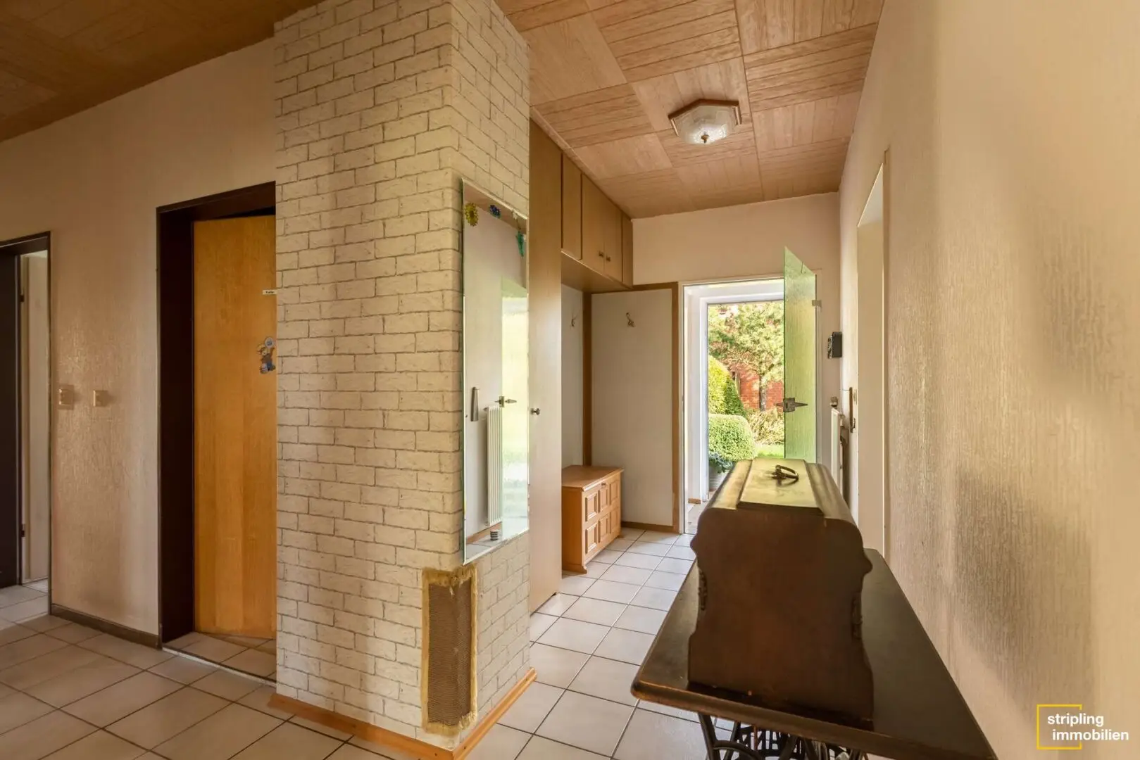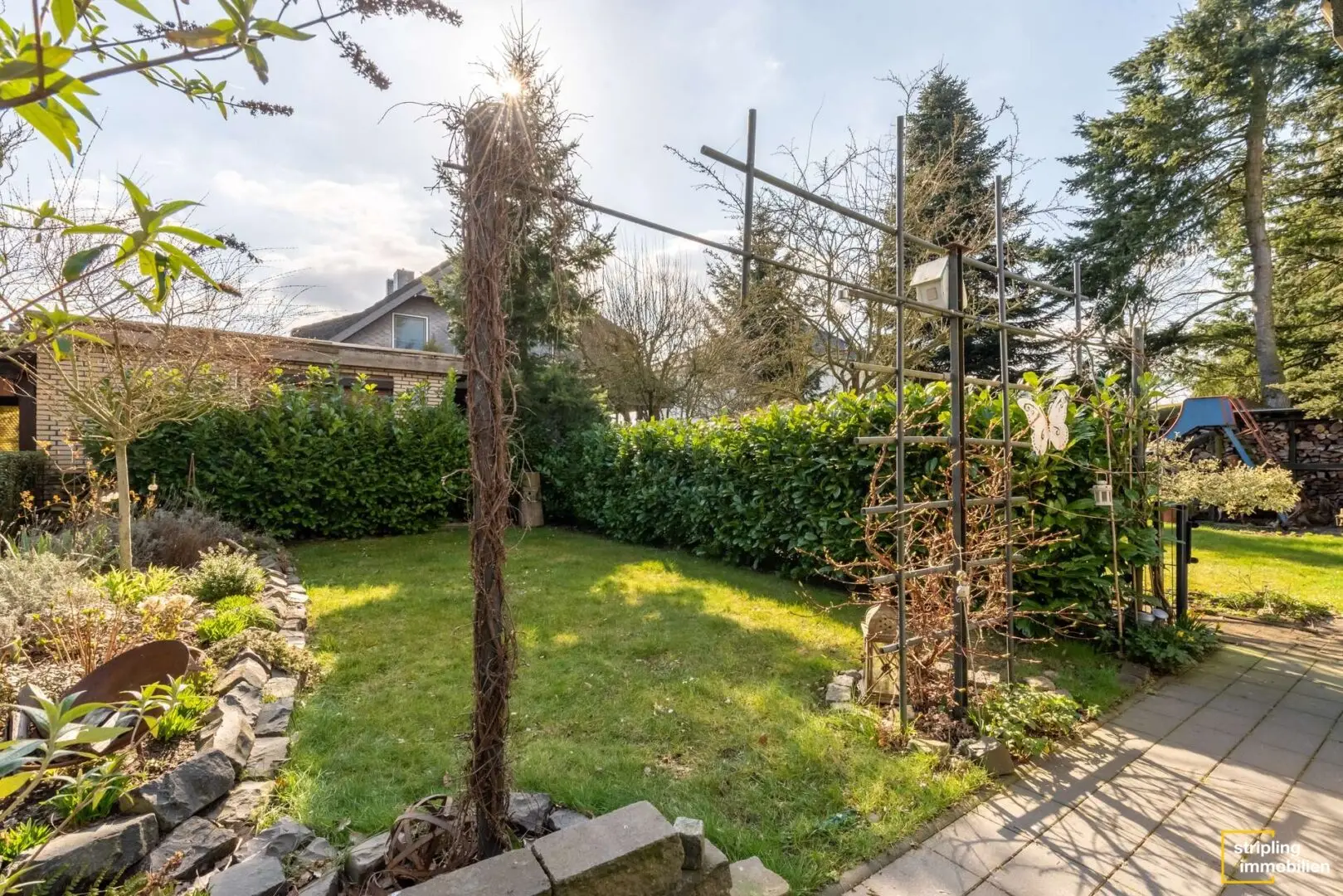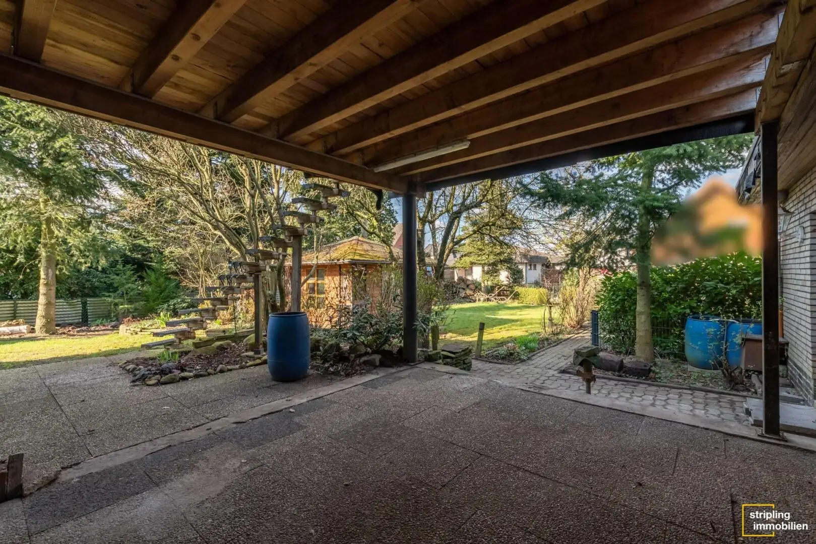 Das hübsch verklinkerte Haus steht auf einem weitläufigen Grundstück, begleitet von einer Garage und mehreren Stellplätzen. Die lange Einfahrt wäre ideal für kleine Bobbycarfahrer oder die Pflege des Familienautos. Hinter dem Gebäude wartet ein schön gewachsener Garten mit Gerätehäuschen auf die neuen Bewohner. Hier steht nicht ein Haus direkt auf dem nächsten und so finden Sie in diesem Stückchen Grün Ruhe und Geborgenheit. Es ist groß genug für Spielgeräte, einen Pool oder auch die Sommerparty mit vielen Freunden.