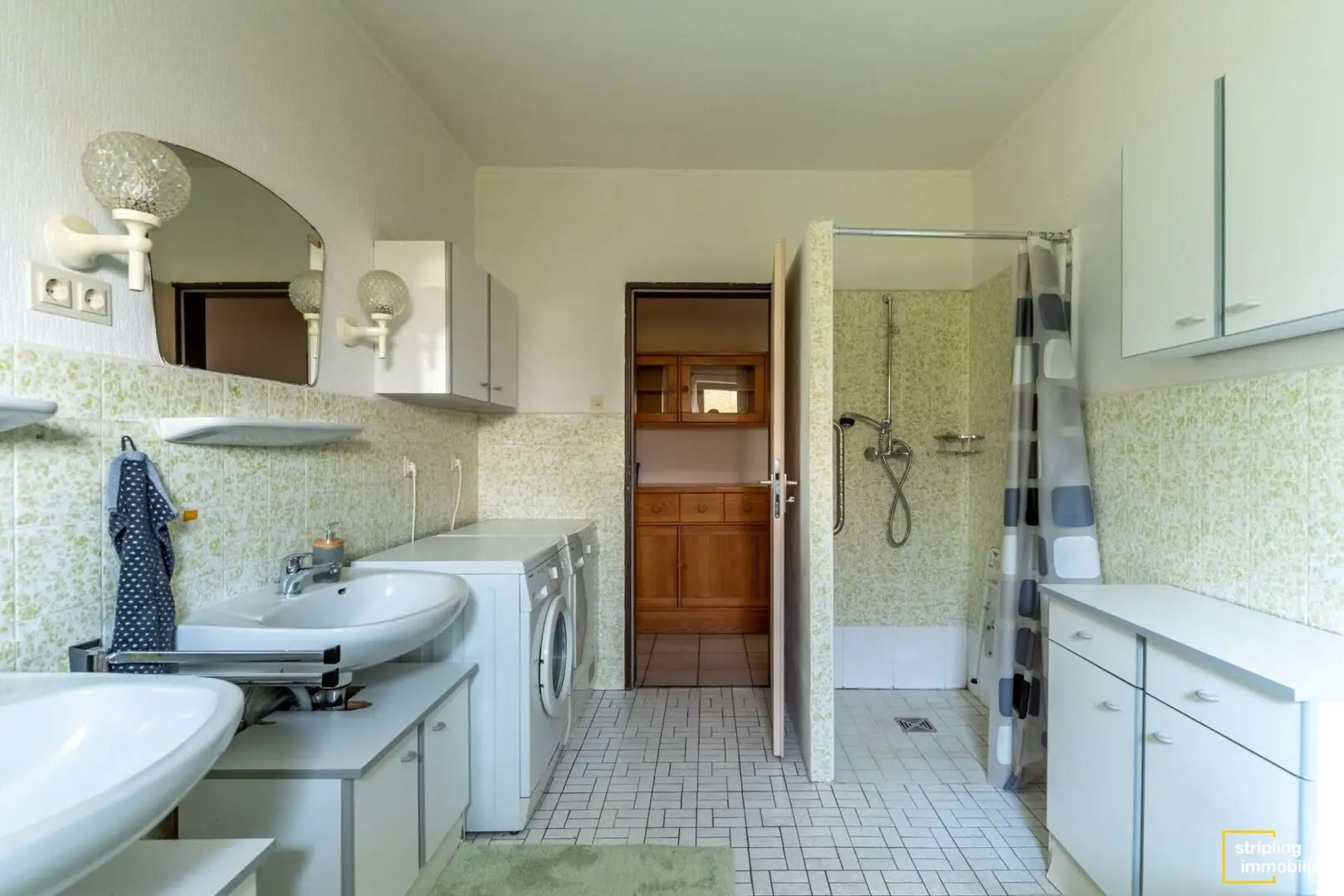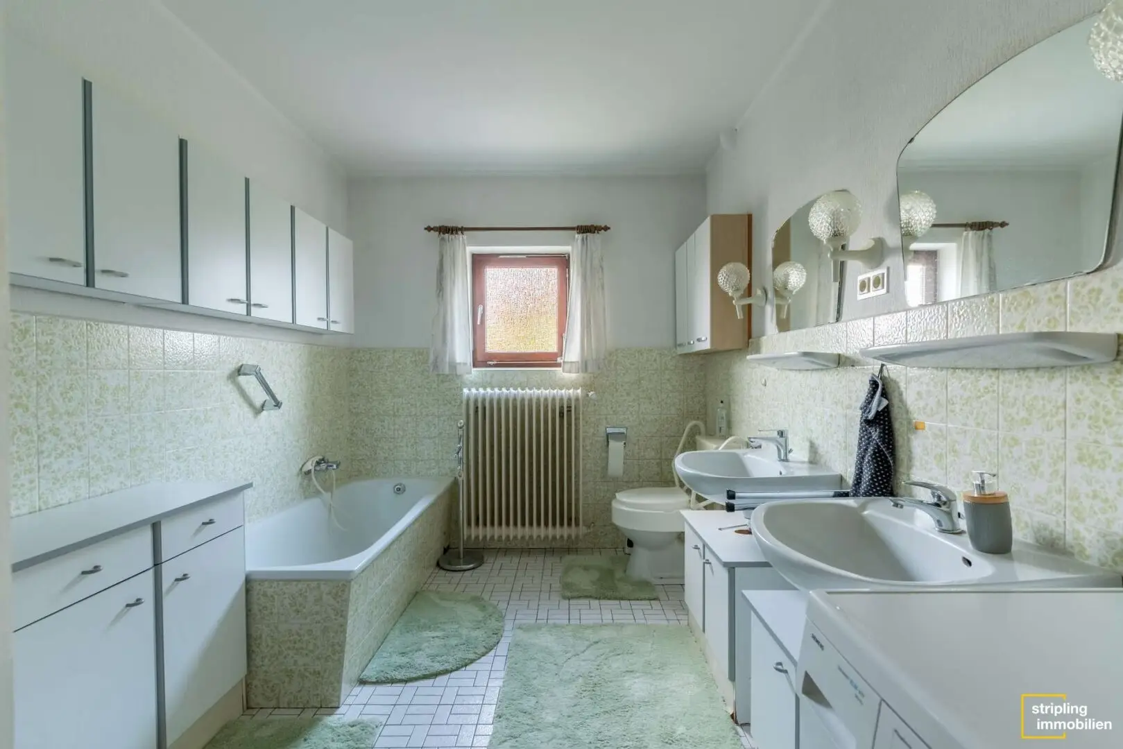 Zusätzlich bietet die Wohnung noch ein großflächiges Badezimmer, in dem es bereits eine Wanne und eine begehbare und bodenebene Dusche gibt. Eine kleine Besonderheit ist der clever gelöste Zugang zum Garten. Über einen kleinen Vorraum am Ende des Flurs gelangen Sie hinaus zur Terrasse und ins Grün. Gummistiefel und Fußballschuhe bleiben einfach hier und niemand trägt den Schmutz ins Haus. Auch, wenn in dieser Wohnung Böden und Wände ein Update benötigen, können Sie sich mit ein wenig Fantasie bereits die modernen Räumlichkeiten ausmalen. Der Vorteil: Wenn Sie noch Änderungen vornehmen können, leben Sie danach in einem Objekt, das ganz nach Ihrem eigenen Geschmack ist. Zusätzlichen Stauraum finden Sie im ca. 23 m² großem Keller.